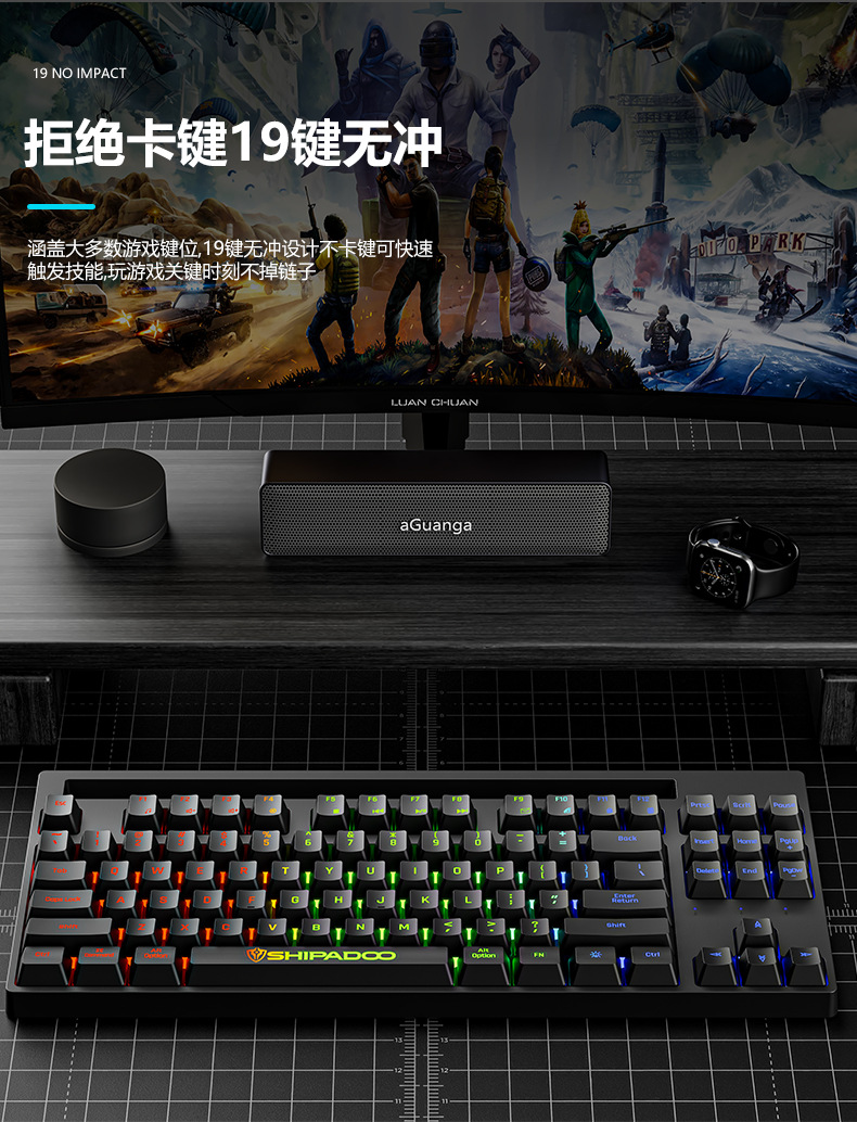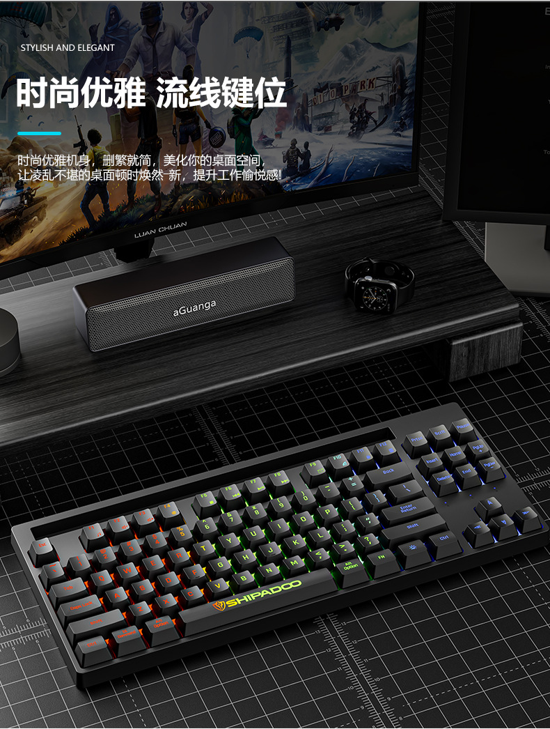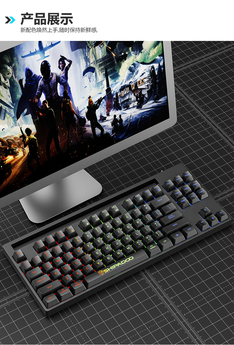 18 du V2 펑크 키 캡 87 스탠드 컴퓨터 유선 USB 인터페이스 노트북 키보드와 키 스퀘어 키