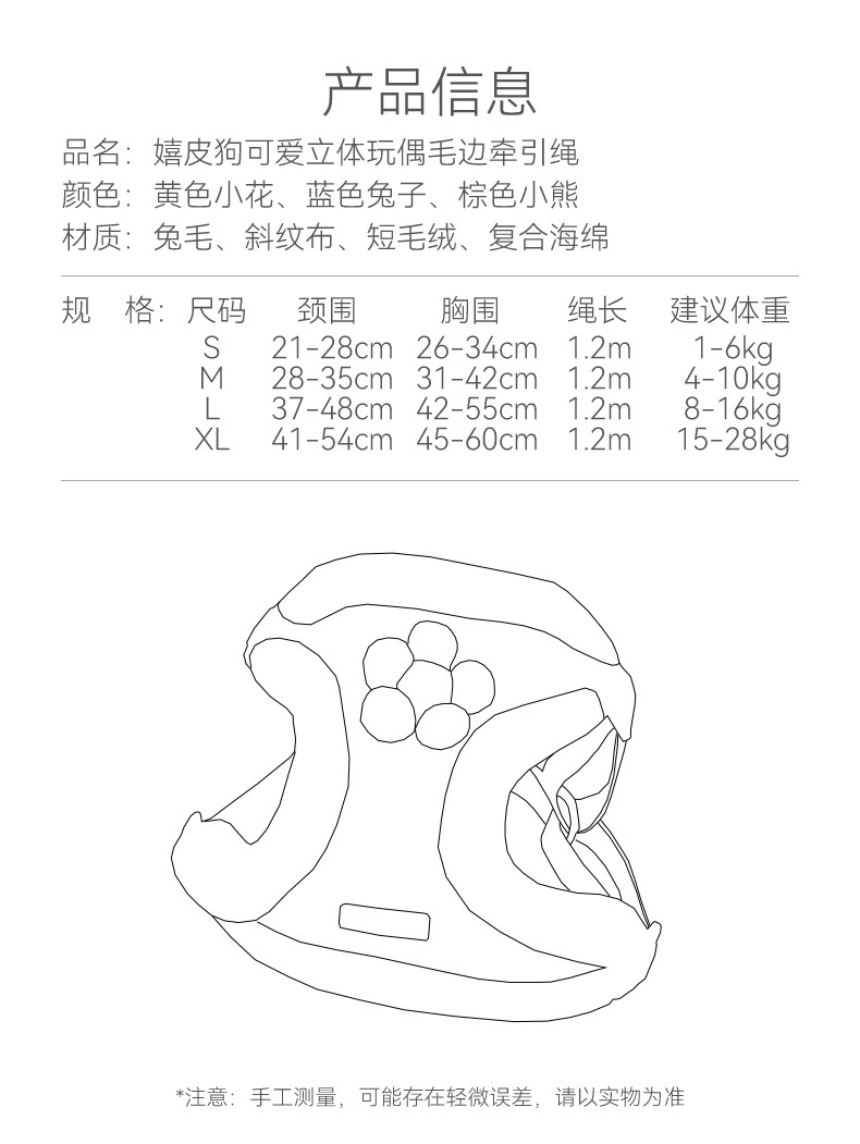 개 가죽 끈 가을과 겨울 조끼 스타일 따뜻한 작은 강아지 곰 가슴 스트랩 고양이 개 체인 개 가죽 끈