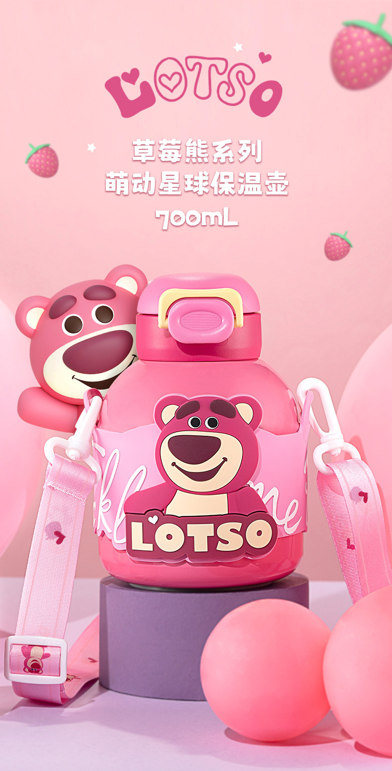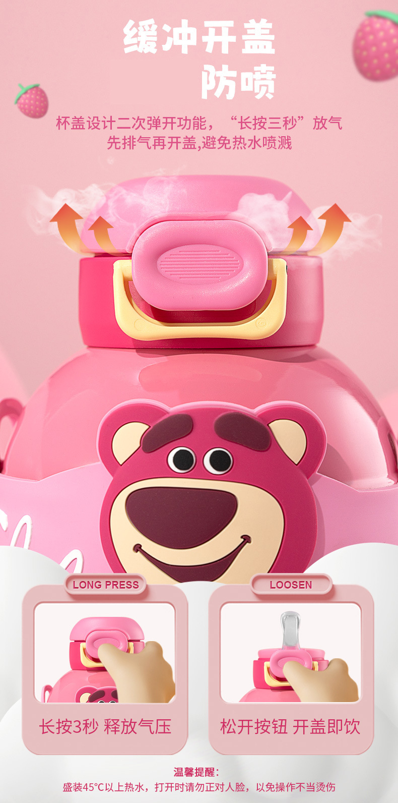 2024 새로운 딸기 곰 세 눈 귀여운 행성 진공 컵 만화 인터넷 유명 인사 밀짚 남자와 여자 컵 생일 선물