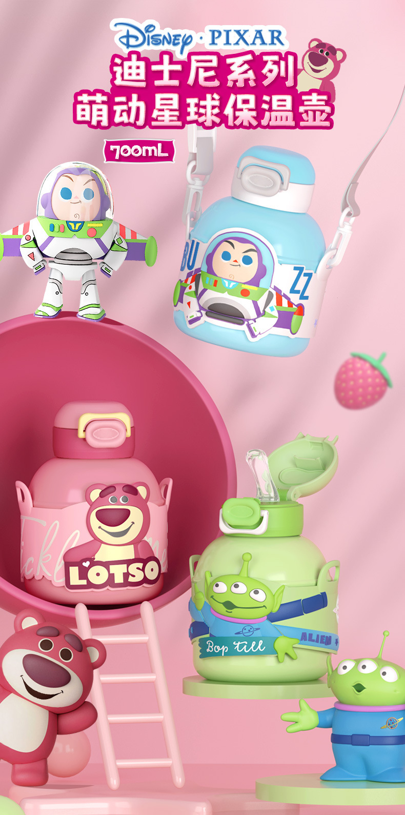 2024 새로운 딸기 곰 세 눈 귀여운 행성 진공 컵 만화 인터넷 유명 인사 밀짚 남자와 여자 컵 생일 선물스토어 가기