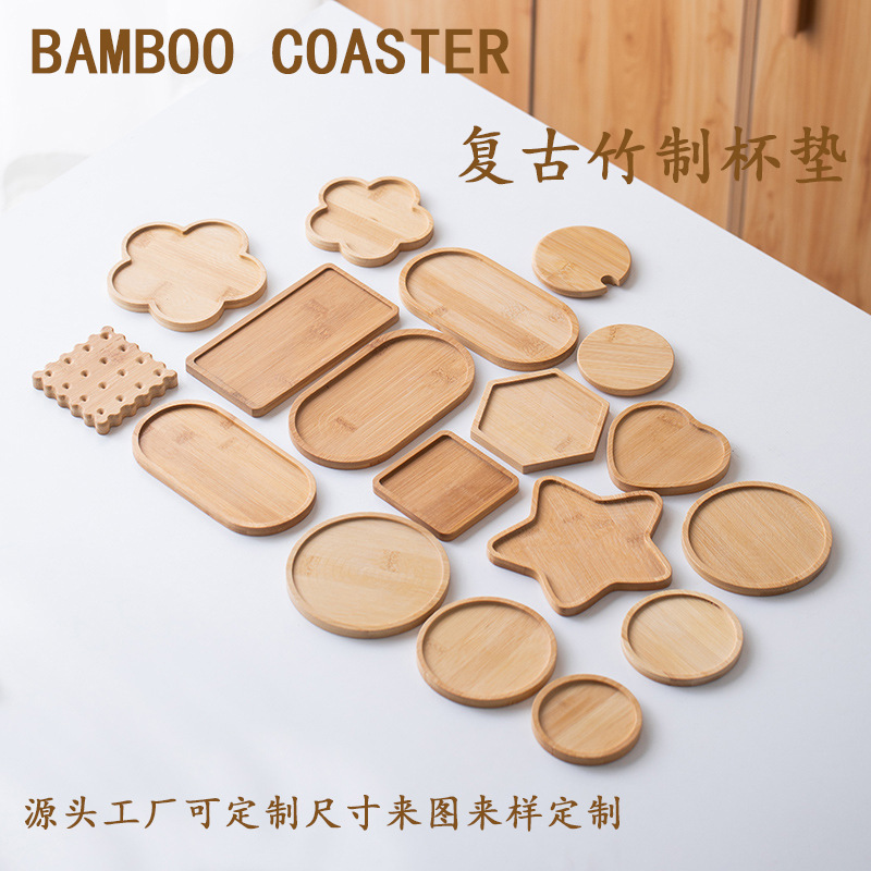 빈티지 대나무 코스터 라운드 꽃 냄비 매트 직사각형 창조적 인 심장 모양의 아침 식사 커피 절연 매트 조각 로고스토어 가기