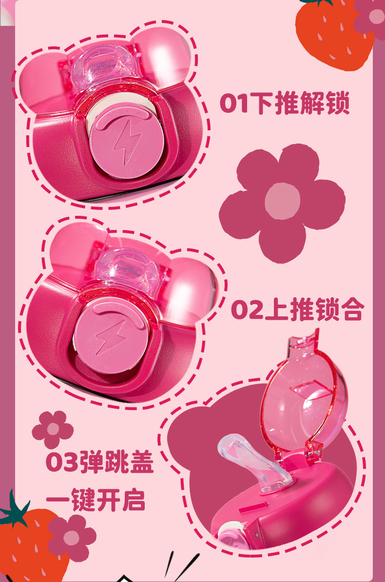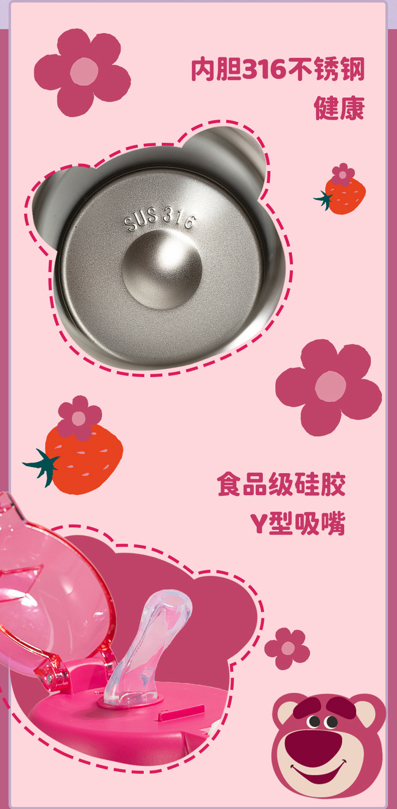 딸기 곰 새로운 다채로운 어린이 소년과 소녀 식품 학년 316 스테인레스 스틸 짚 보온병 컵 생일 선물스토어 가기