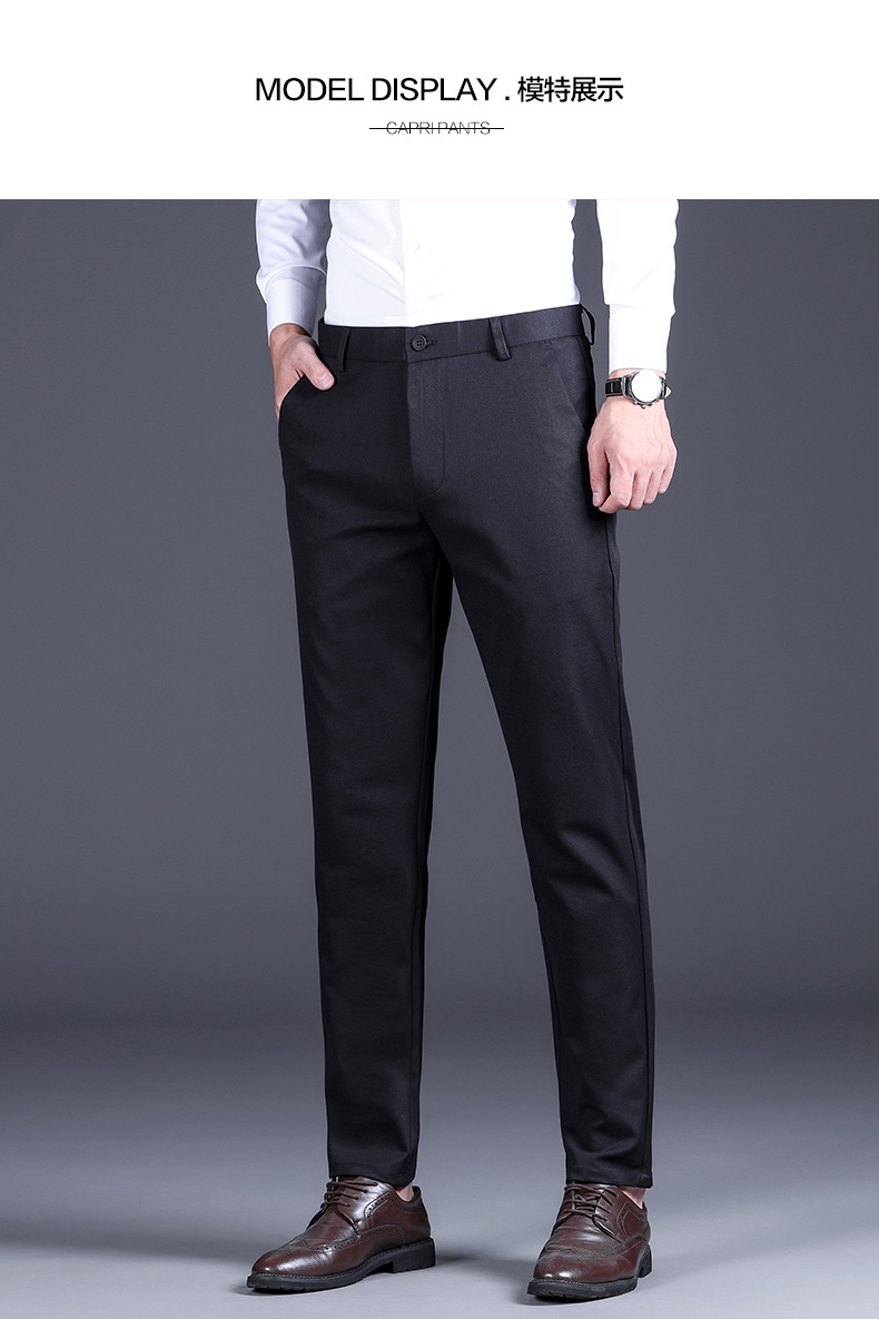 남성 슬림 핏 캐주얼 바지 봄과 여름 새로운 조명 비즈니스 세트 바지 청소년 패션 단색 작은 발 긴 바지 남성