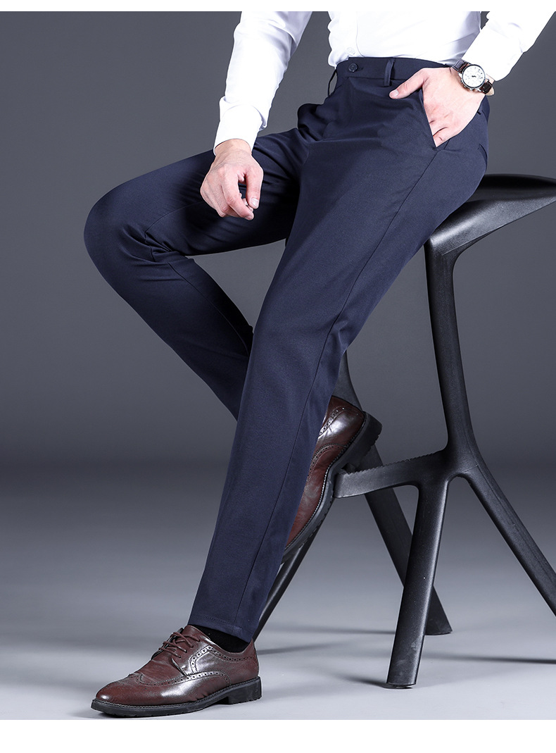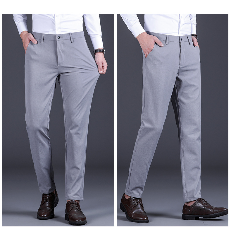 남성 슬림 핏 캐주얼 바지 봄과 여름 새로운 조명 비즈니스 세트 바지 청소년 패션 단색 작은 발 긴 바지 남성스토어 가기