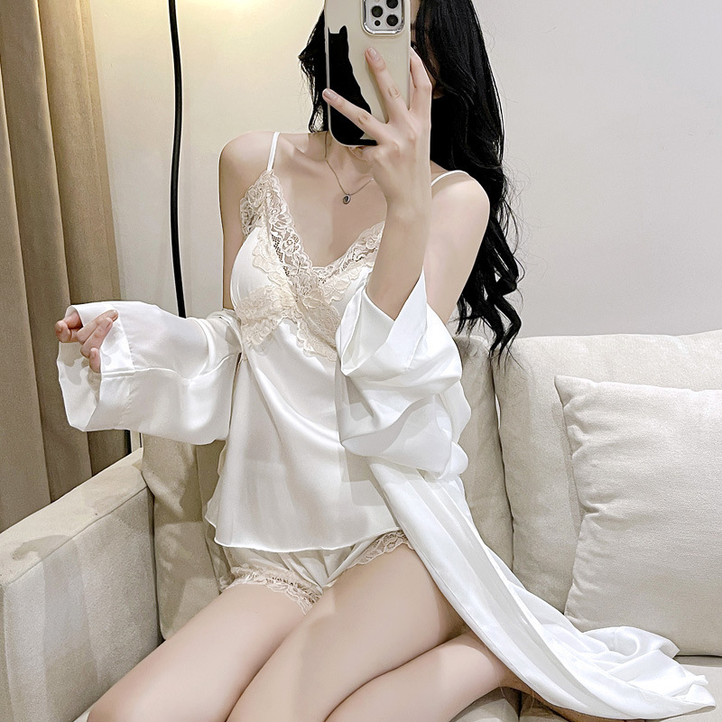 • (나이트가운+로브) 오프화이트 - 새틴 실크