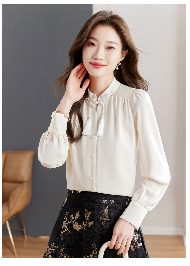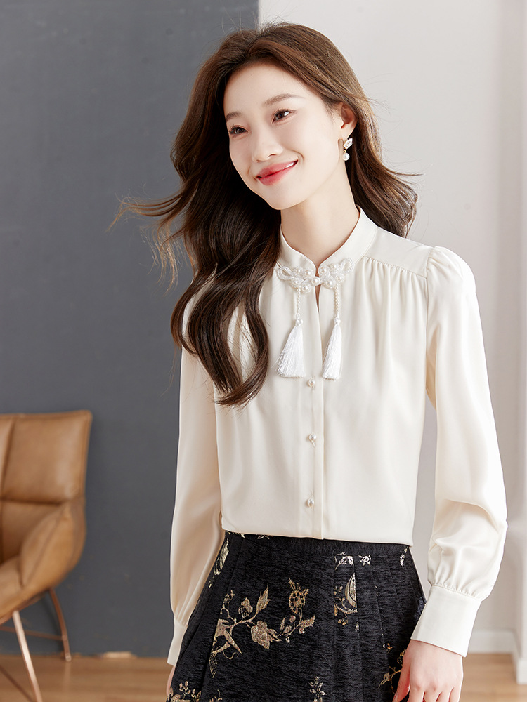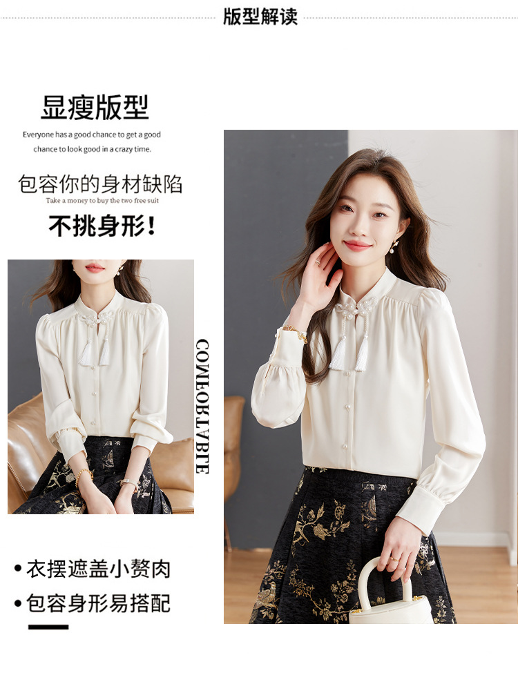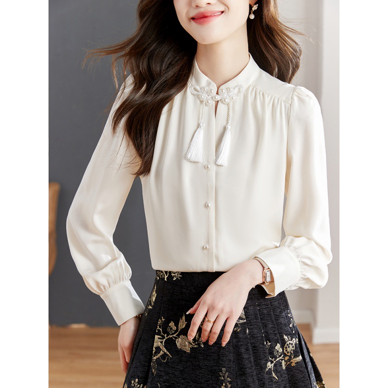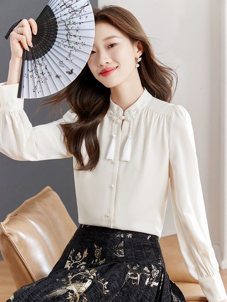 새로운 중국 스타일의 선 개선 긴팔 셔츠 여성 어울리는 조끼 치마 기질 탑스토어 가기