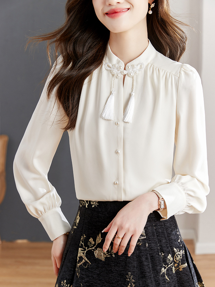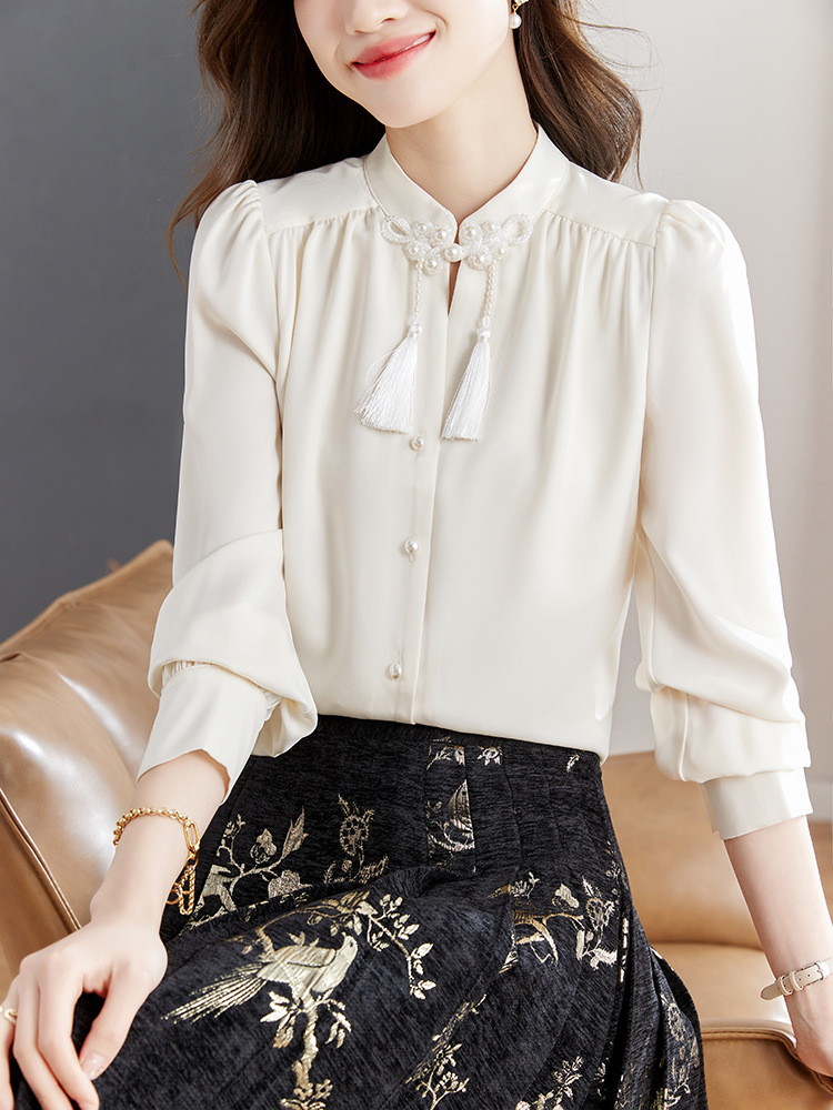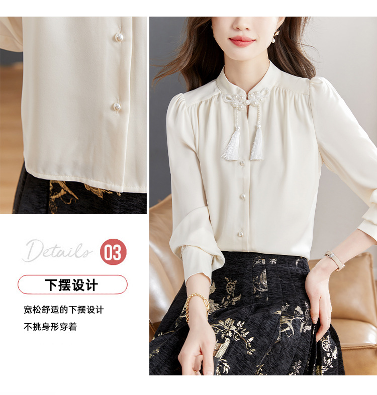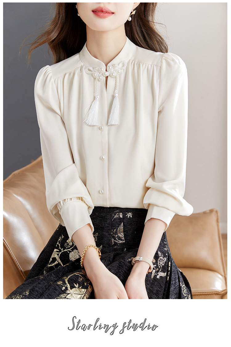 새로운 중국 스타일의 선 개선 긴팔 셔츠 여성 어울리는 조끼 치마 기질 탑스토어 가기