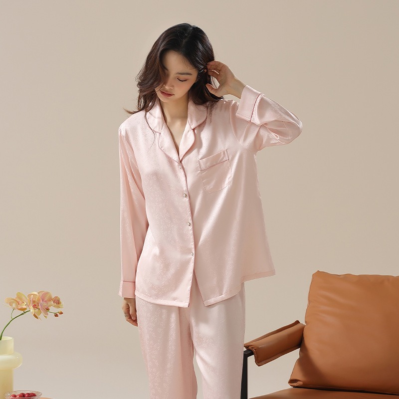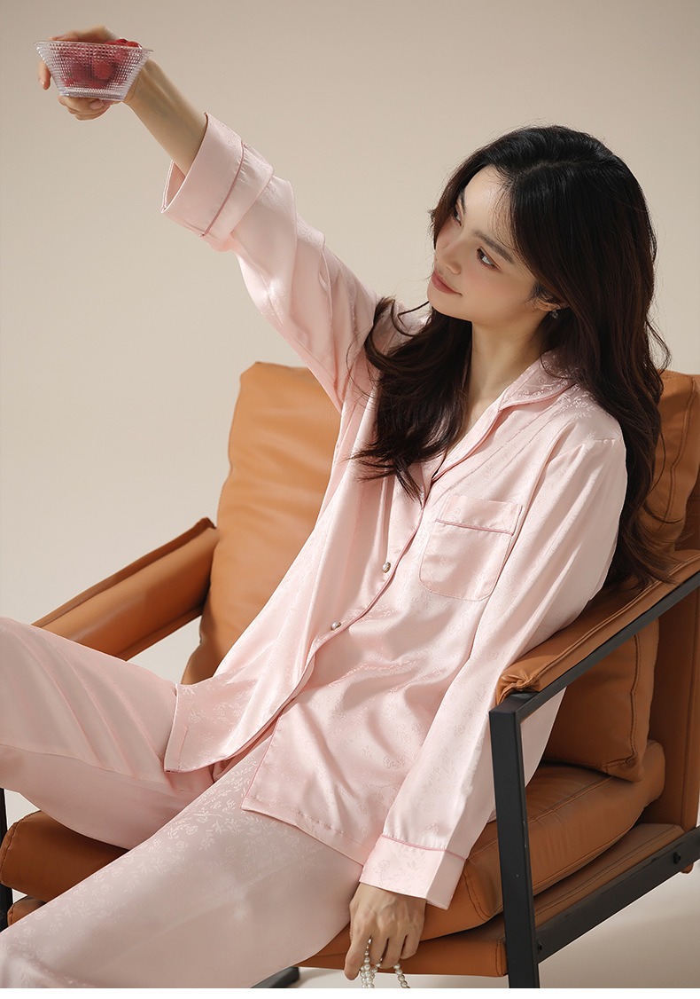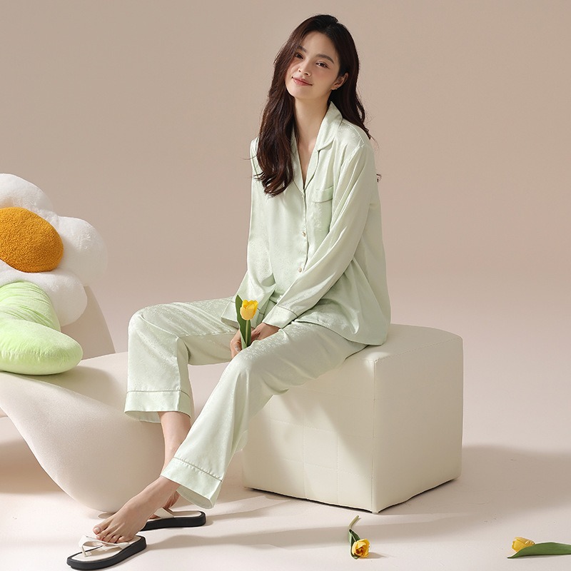 [아이스실크] 봄 얼음 실크 잠옷 여성 중국식 얇은 인조 실크 잠옷 여성 홈웨어 세트
