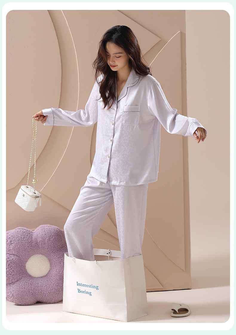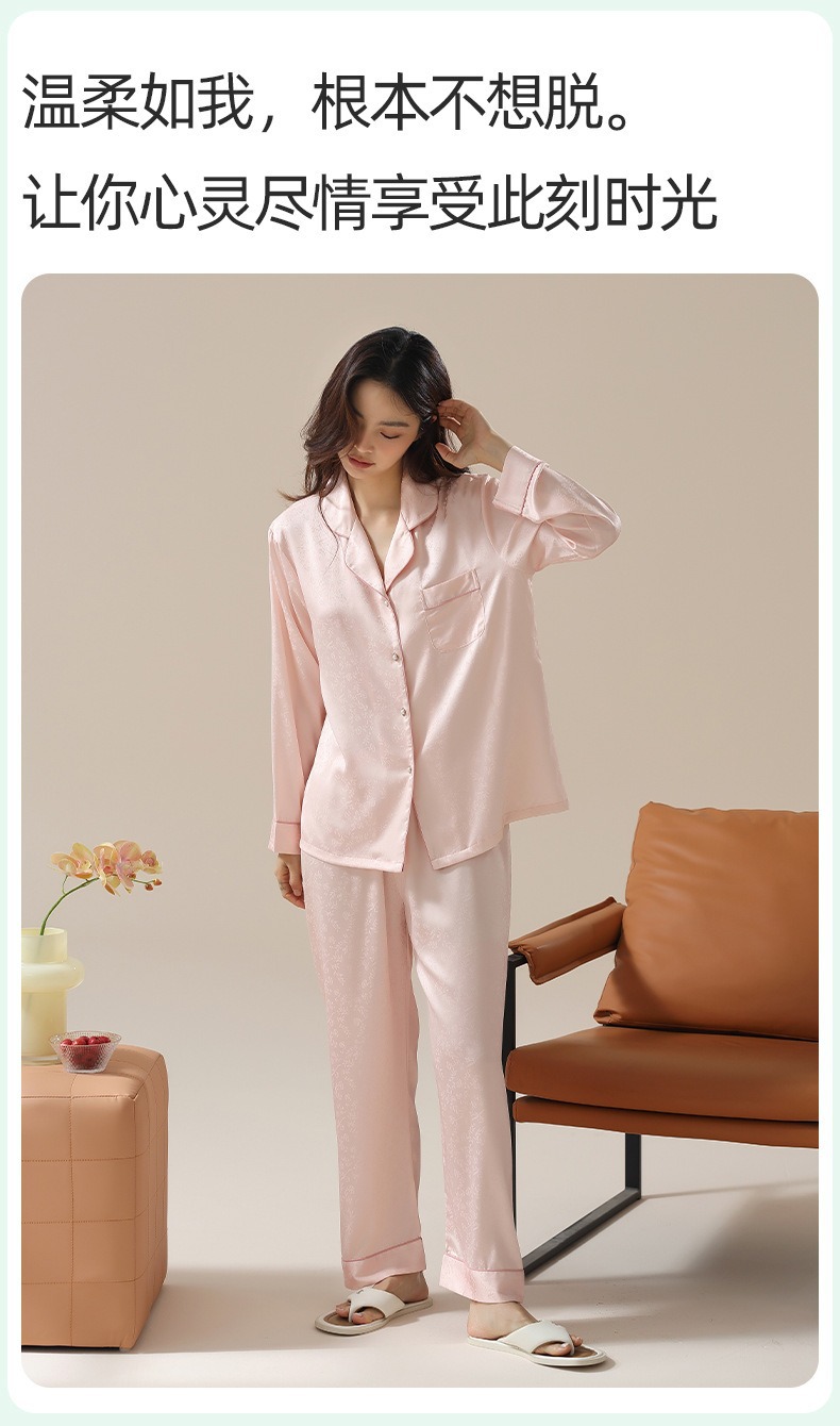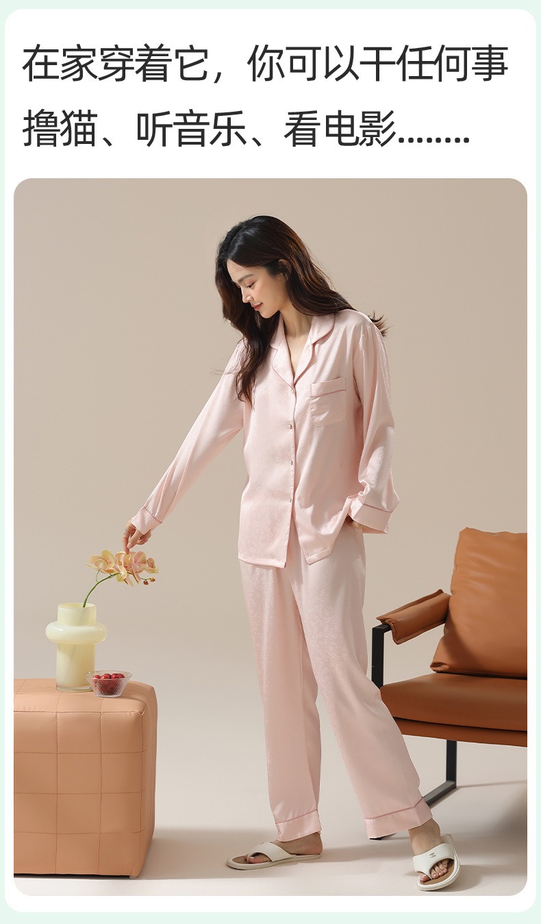 [아이스실크] 봄 얼음 실크 잠옷 여성 중국식 얇은 인조 실크 잠옷 여성 홈웨어 세트스토어 가기