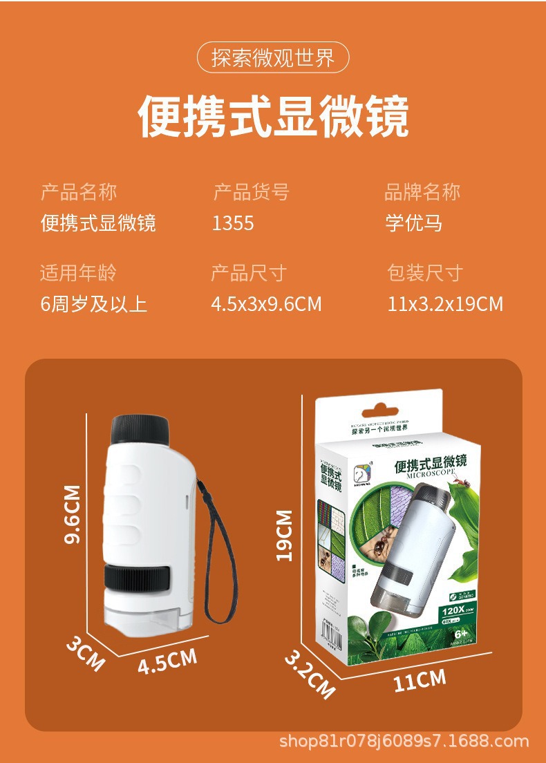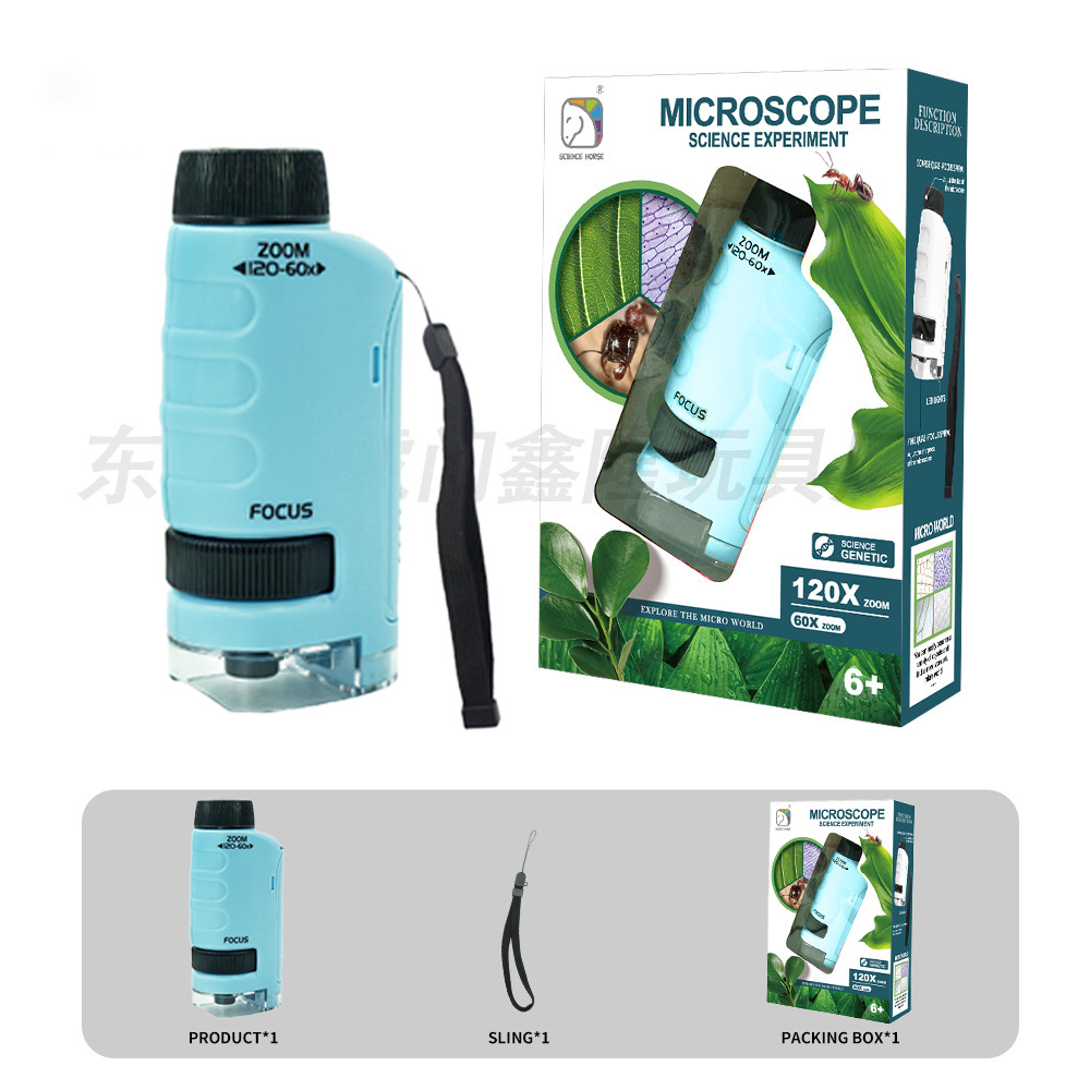 어린이 휴대용 휴대용 현미경 HD 광학 초등 및 중등 학교 학생 야외 과학 실험 교육 완구 국경스토어 가기