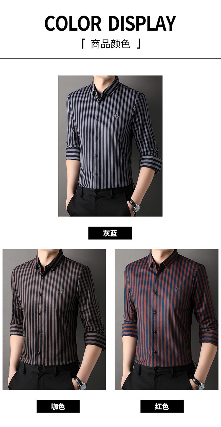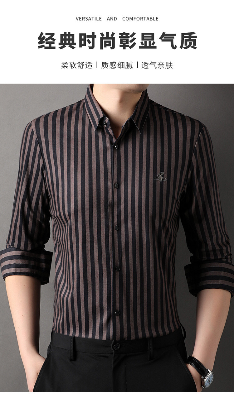 2024 새로운 남성 긴팔 셔츠 봄과 가을 비 다림질 주름 줄무늬 원활한 셔츠 남성 비즈니스 캐주얼 고급스토어 가기
