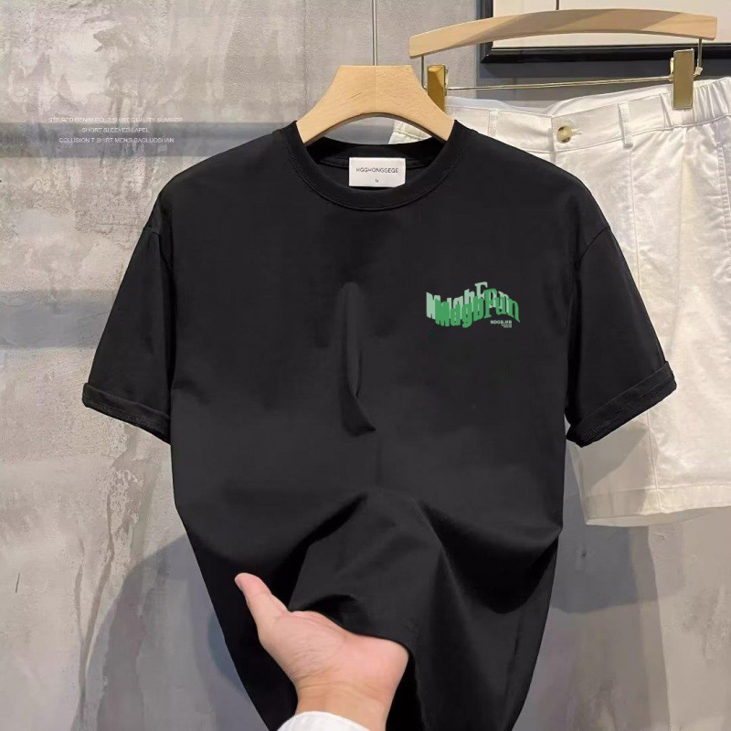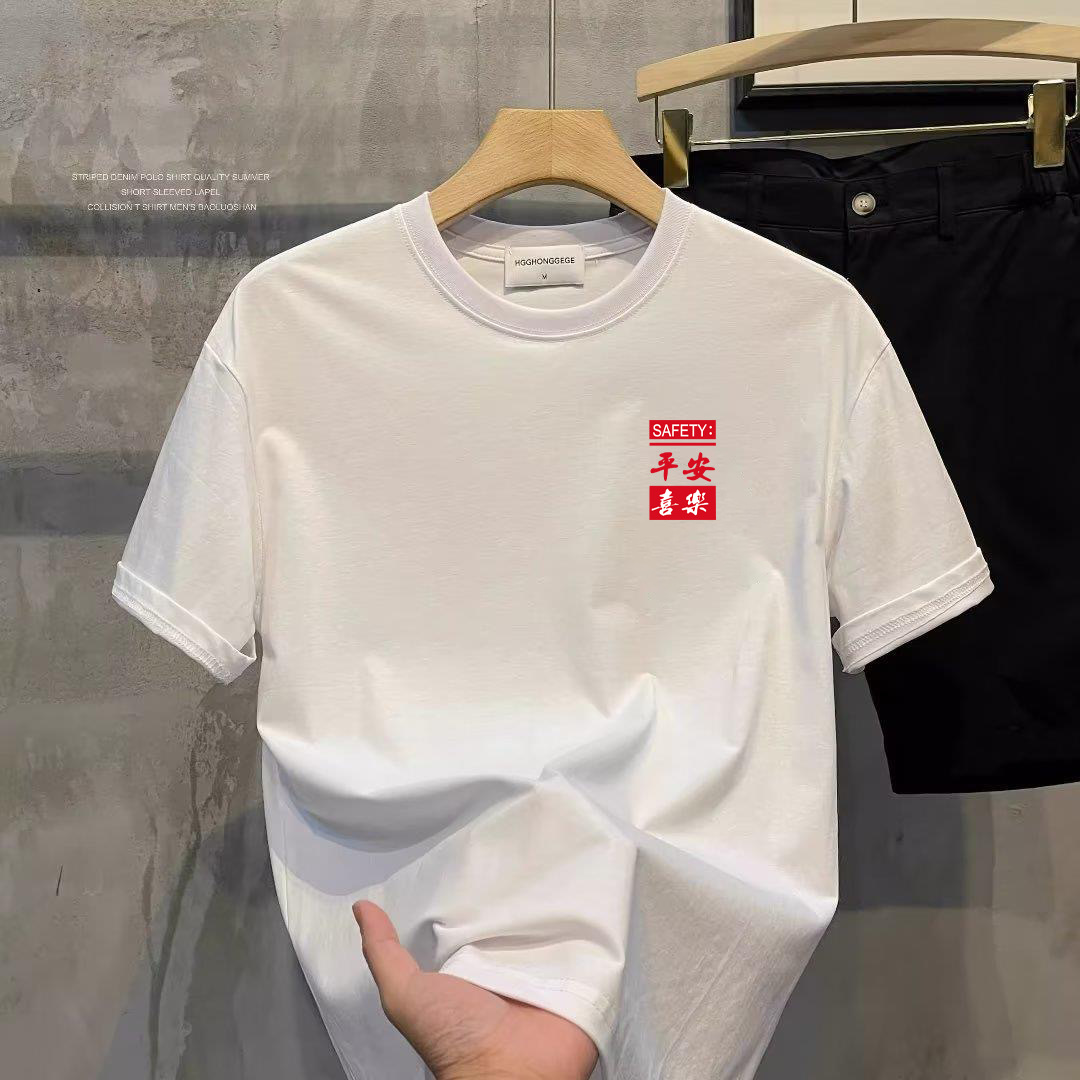 남성 티셔츠 하이 엔드 순수한 흰색 둥근 목 짧은 소매 캐주얼 다용도 커플 바닥 셔츠 트렌디 한 프린트 탑 인쇄
