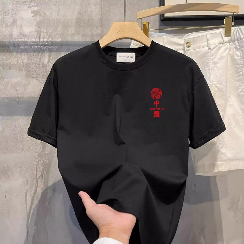 남성 티셔츠 하이 엔드 순수한 흰색 둥근 목 짧은 소매 캐주얼 다용도 커플 바닥 셔츠 트렌디 한 프린트 탑 인쇄스토어 가기