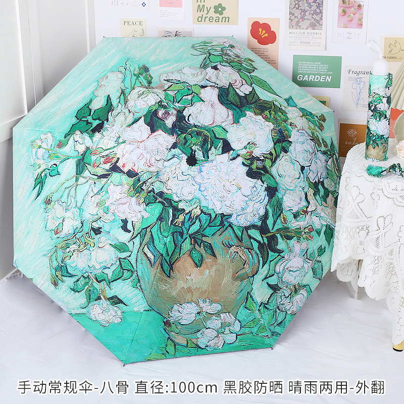 • 수동 지우허 우산 [반 고흐·그린 로즈]