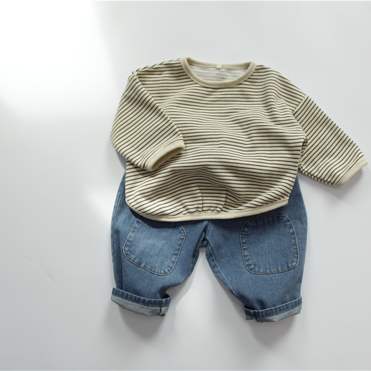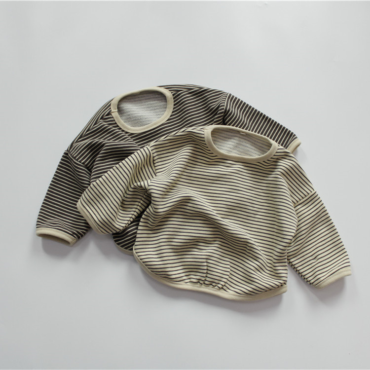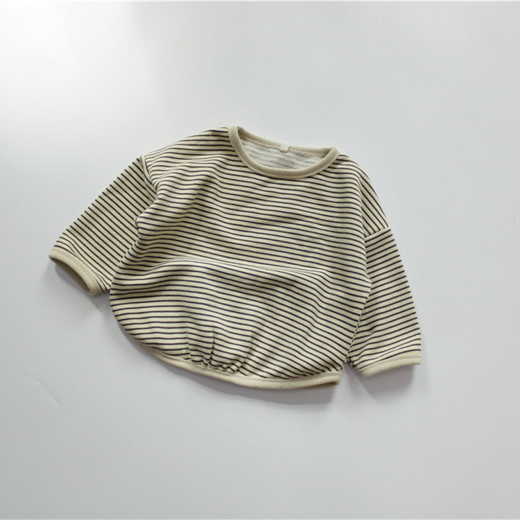 신상품 가을 아동 티셔츠 긴팔 여아 이너웨어 순면 한국 스타일 스트라이프 라운드넥 남아 풀오버 드롭쉬핑스토어 가기