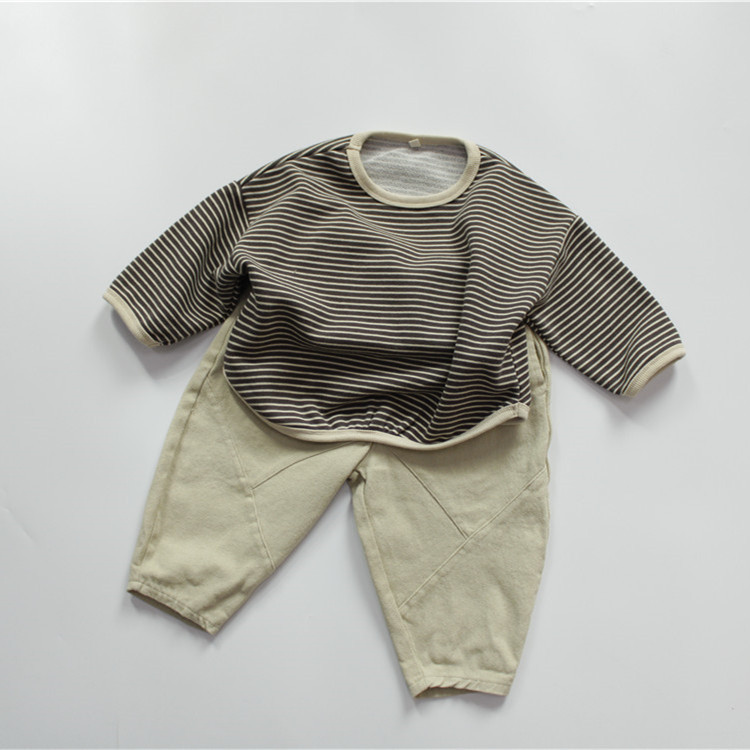 신상품 가을 아동 티셔츠 긴팔 여아 이너웨어 순면 한국 스타일 스트라이프 라운드넥 남아 풀오버 드롭쉬핑