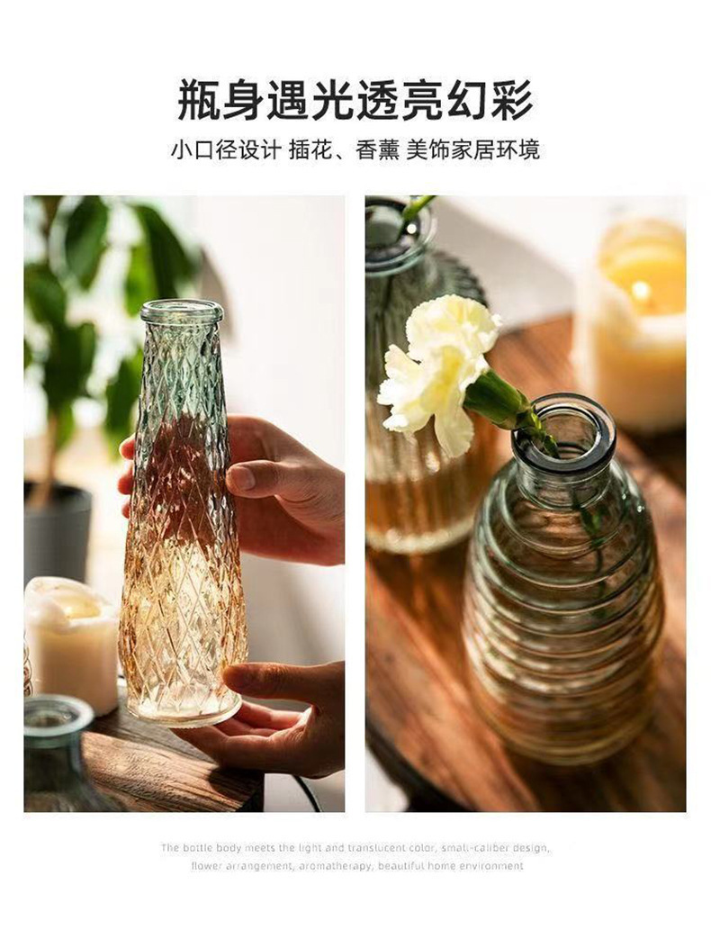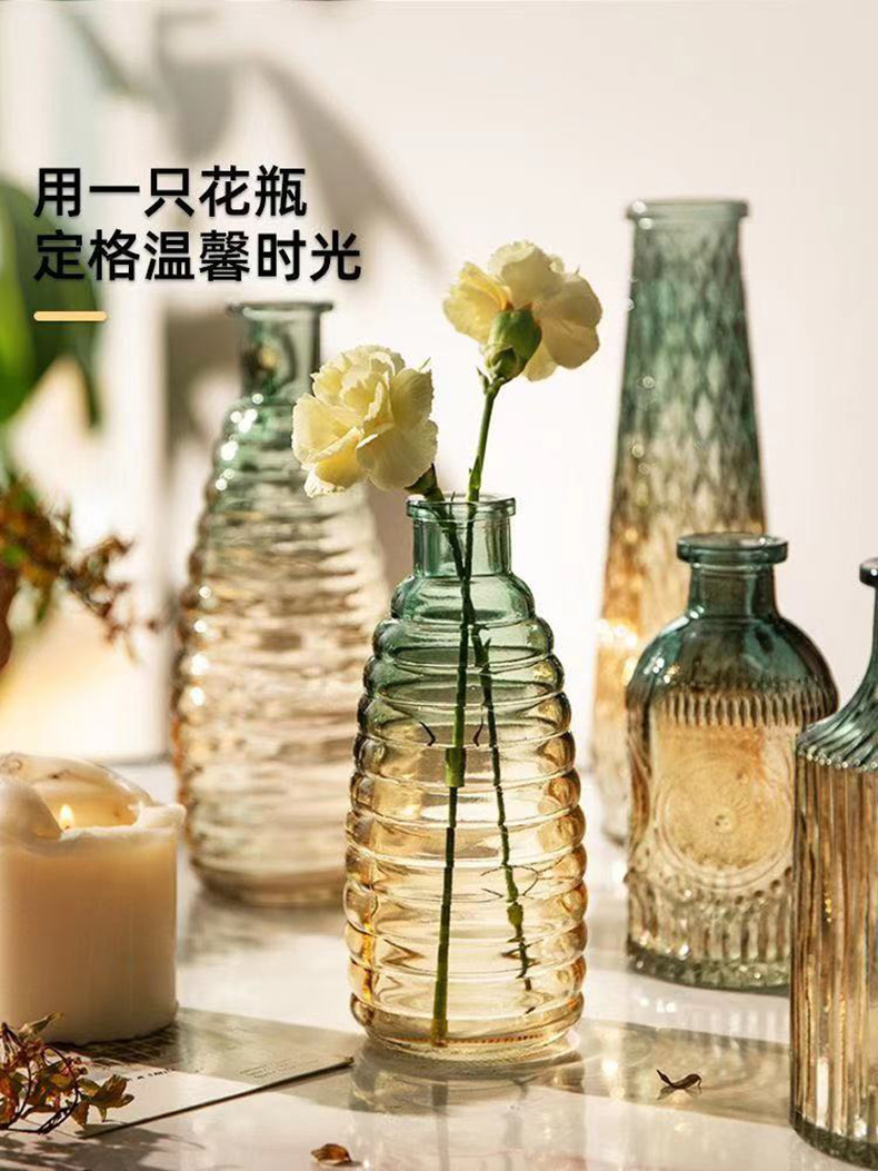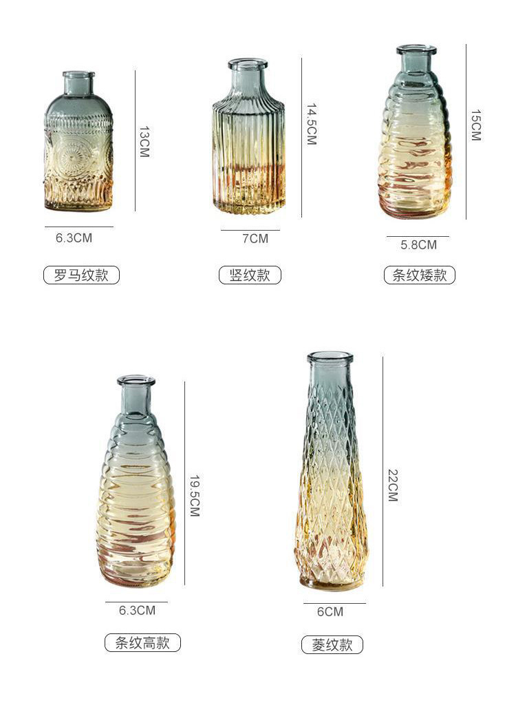 레트로 엠보싱 투명 스몰 사이즈 꽃병 거실 장식 그라디언트 컬러 홈 꽃꽂이 장식 프랑스 수경 유리 병스토어 가기