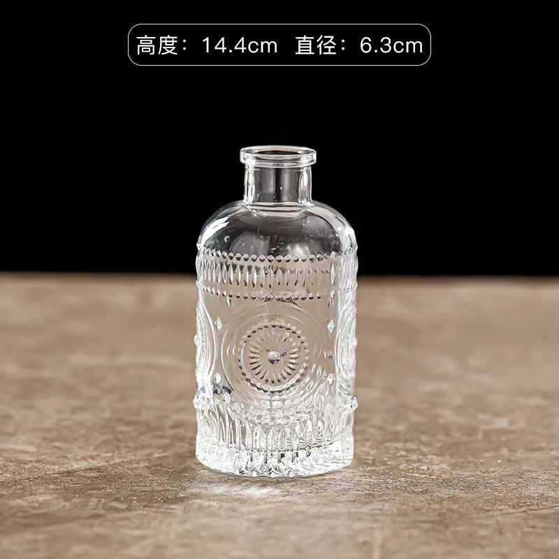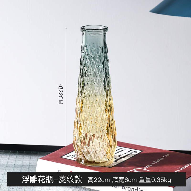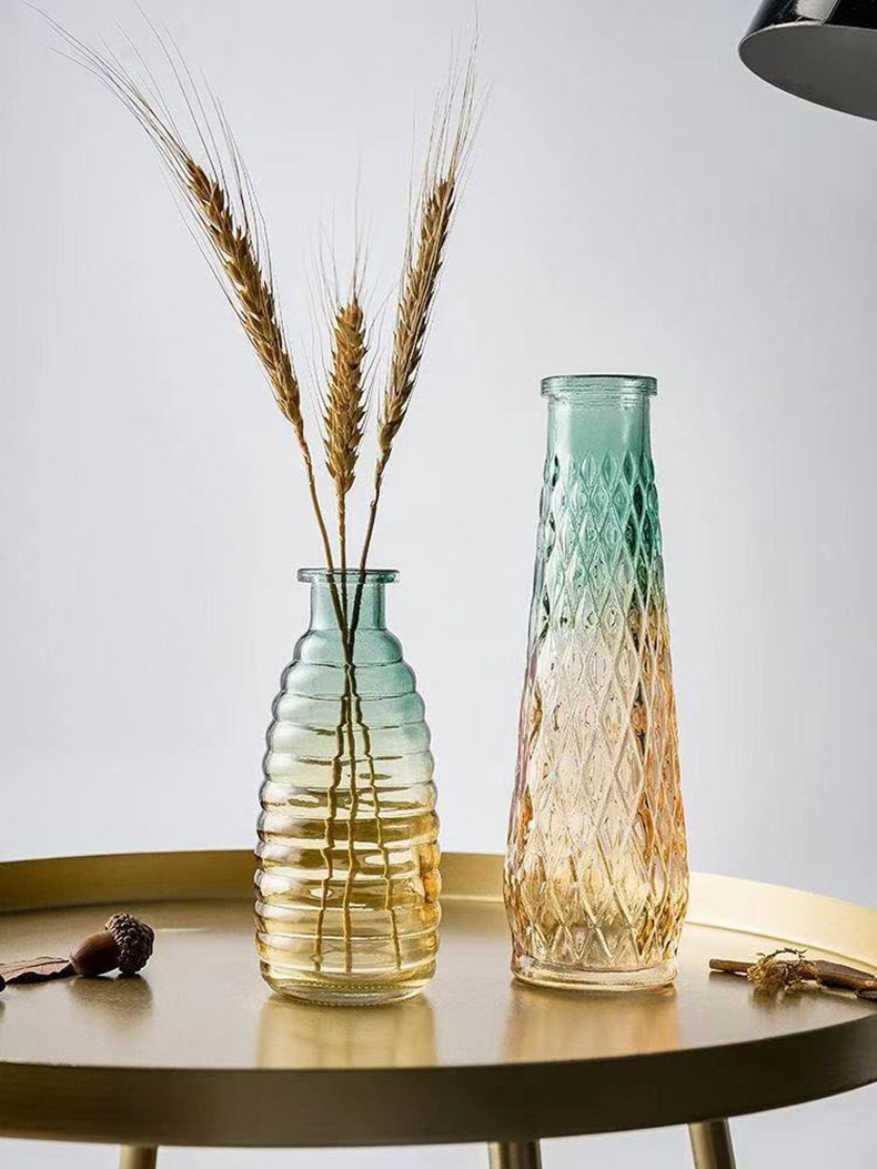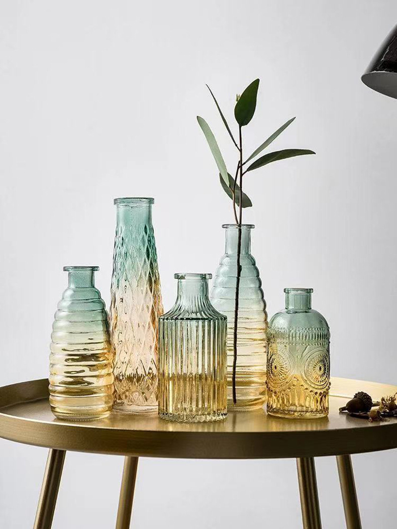 레트로 엠보싱 투명 스몰 사이즈 꽃병 거실 장식 그라디언트 컬러 홈 꽃꽂이 장식 프랑스 수경 유리 병