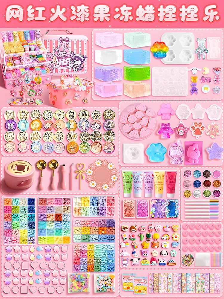 • [꽃 탐사 세트]-화재 페인트 젤리 왁스-고양이 발톱 곰 금형 조합 + 3 층 저장 상자