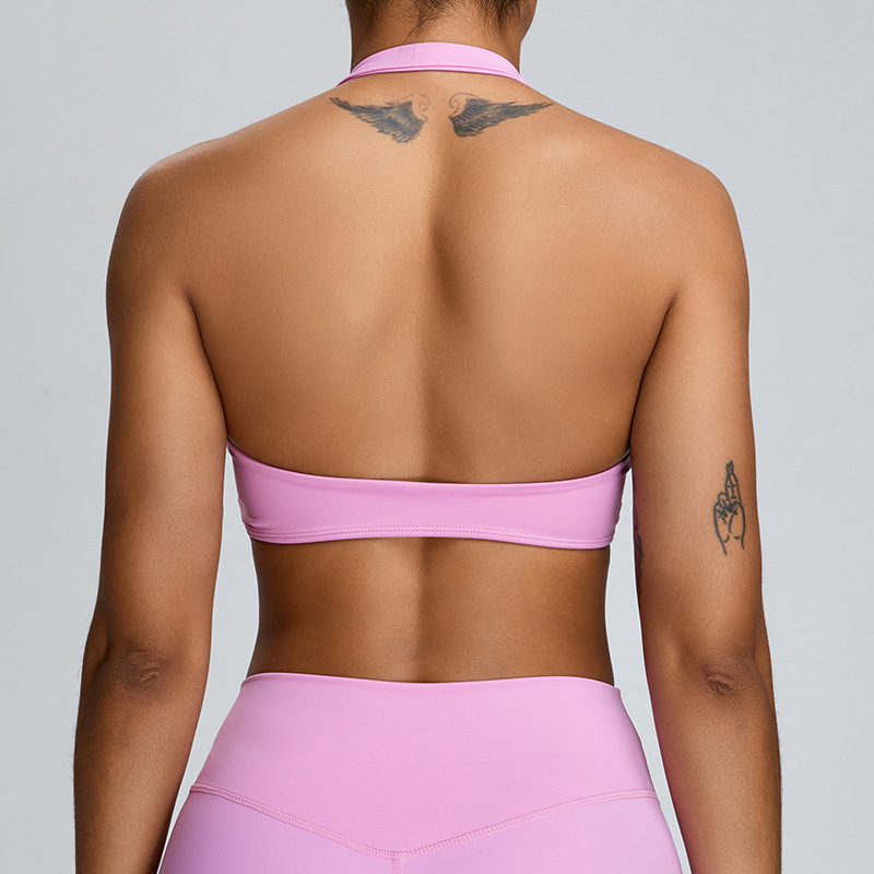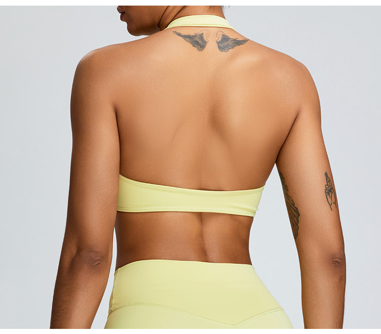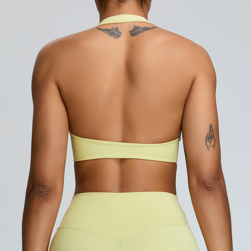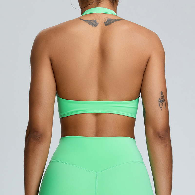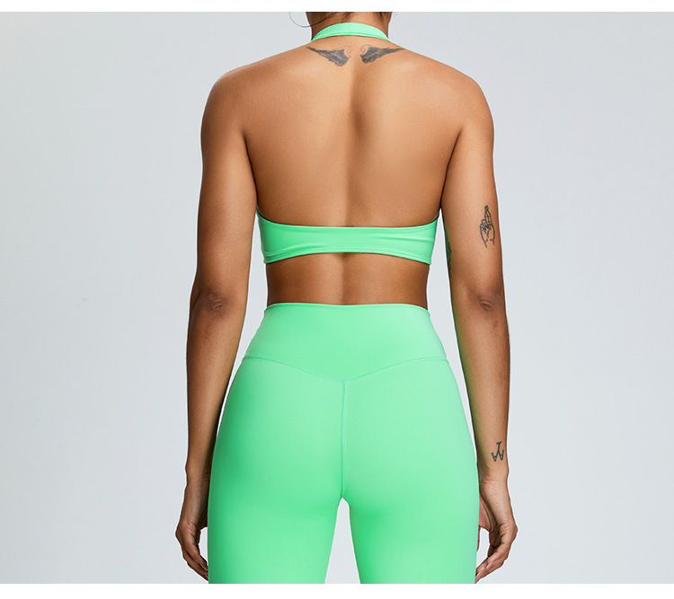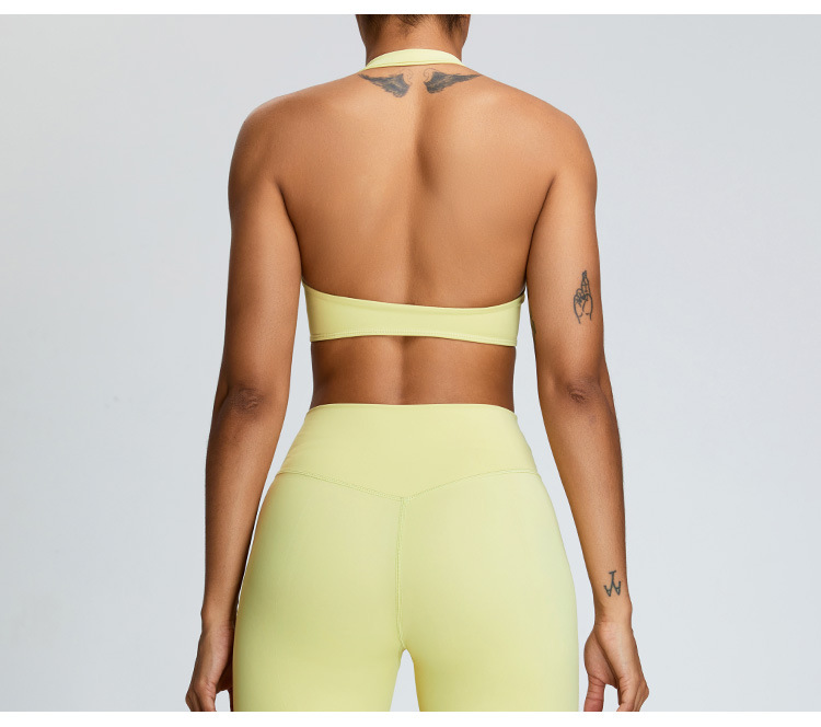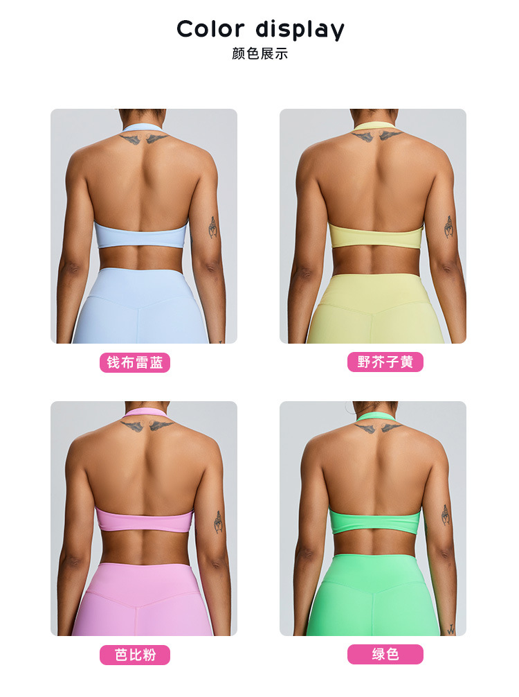클리어런스, 환불불가, 교환불가, 홀터넥, 여성용 아름다운 등 요가브라, 푸쉬업 충격방지 스포츠브라, 런닝 피트니스웨어 상의