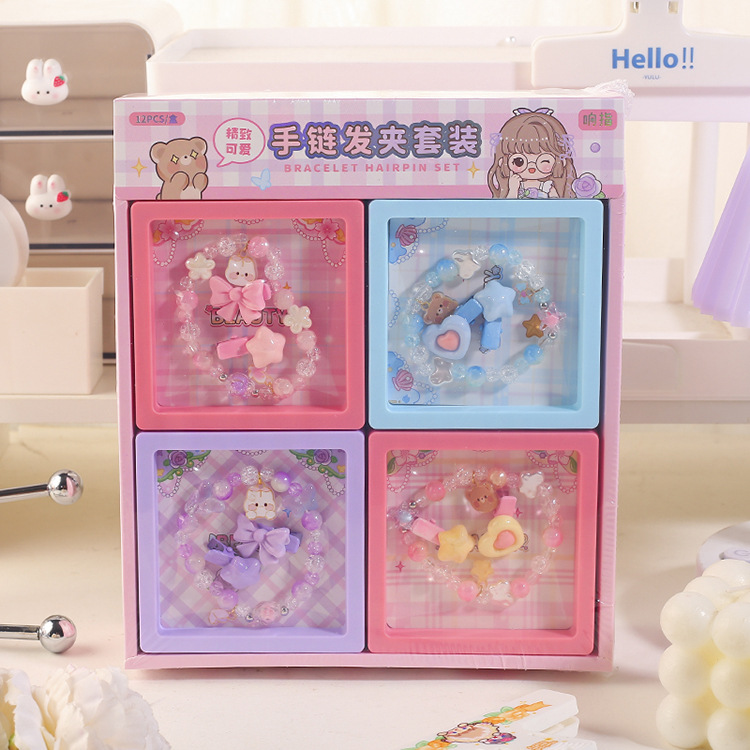 • 100368-작은 타로 공주 왈츠 머리핀 팔찌 세트 싱글 (4 혼합)