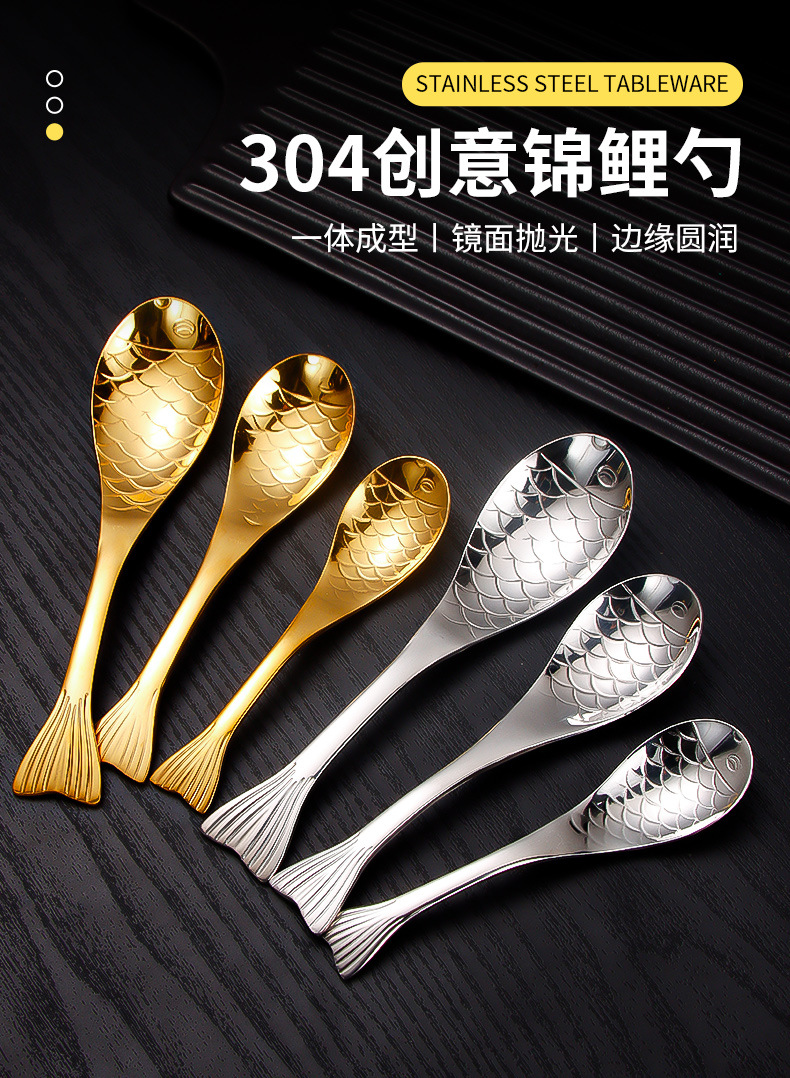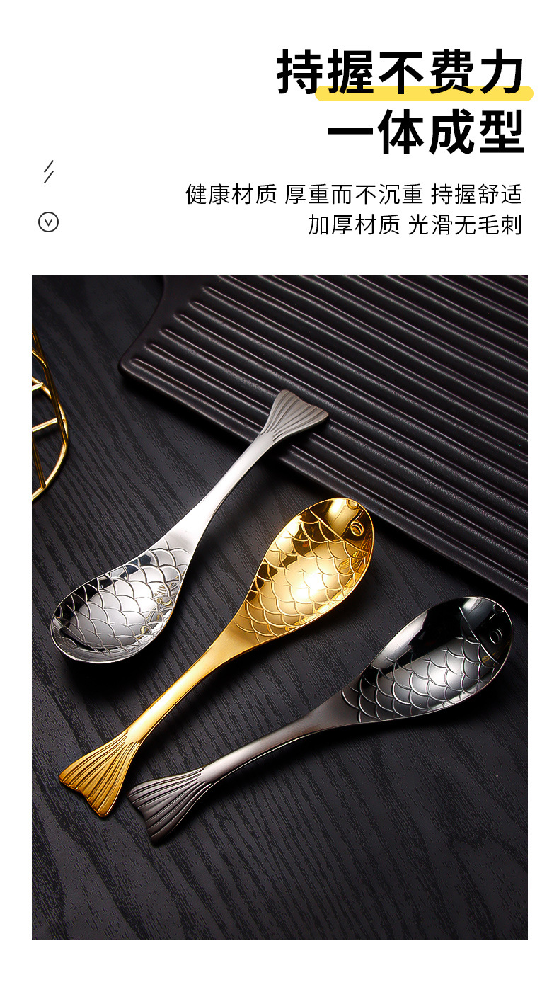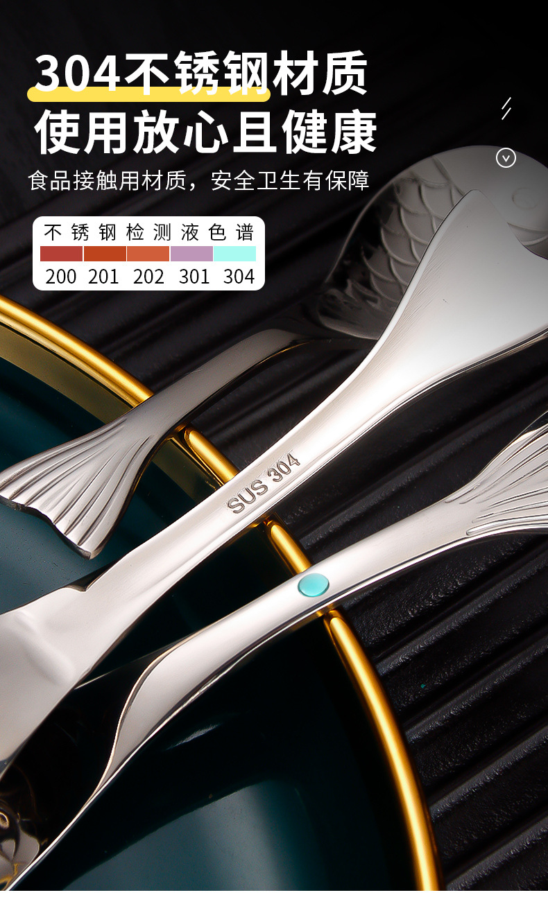 304 스테인리스 숟가락 창조적 인 식기 생선 꼬리 숟가락 가정 성인 먹는 숟가락 어린이 숟가락 조미료 숟가락