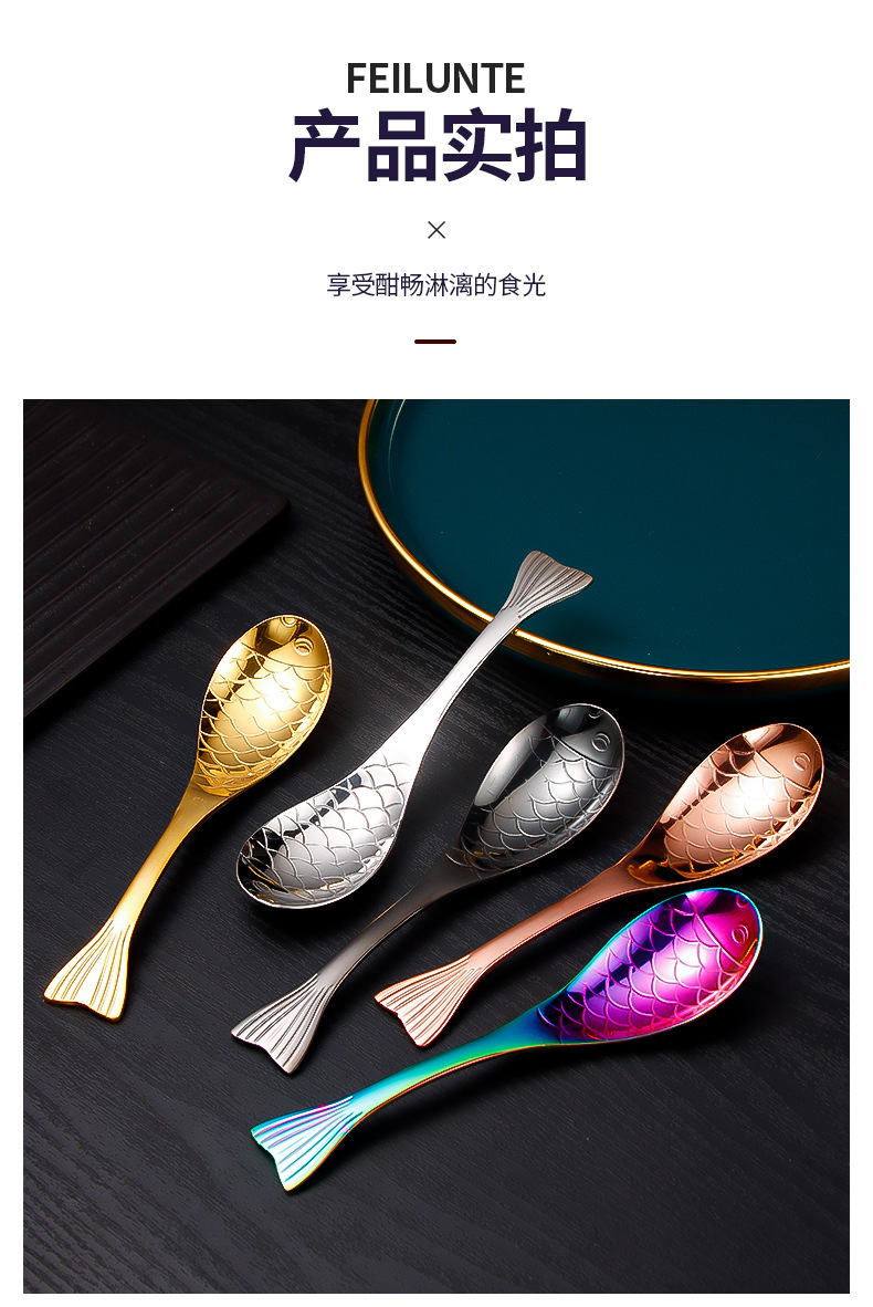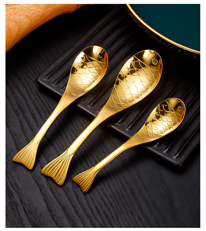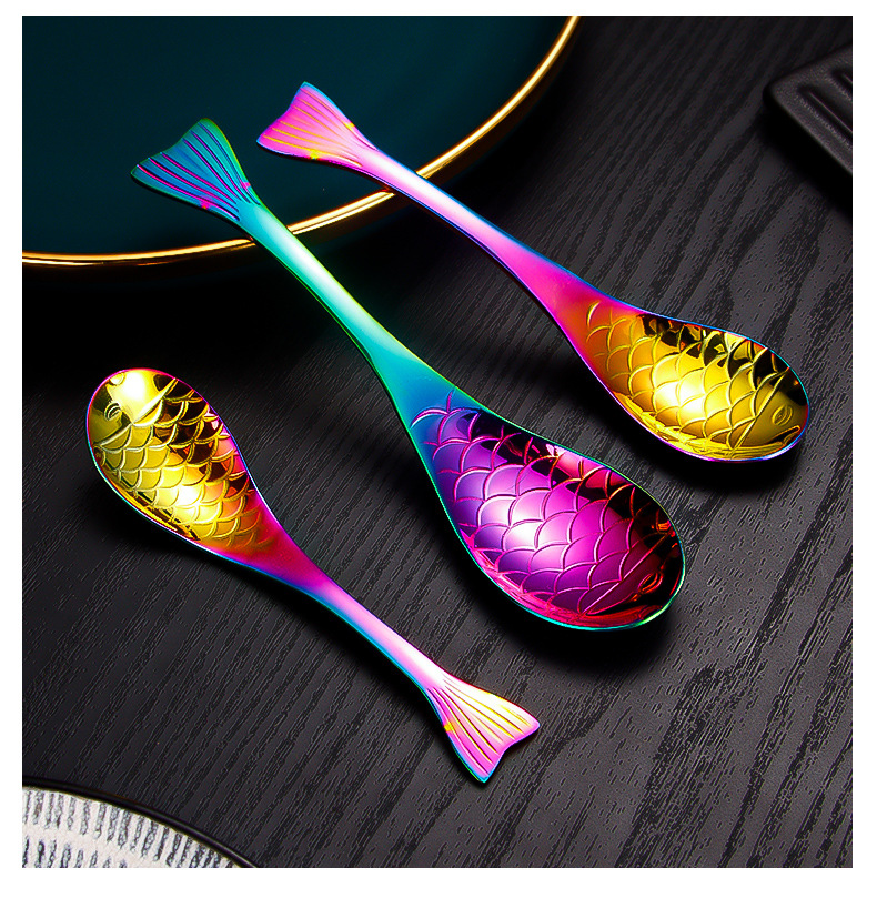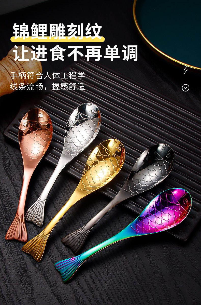 304 스테인리스 숟가락 창조적 인 식기 생선 꼬리 숟가락 가정 성인 먹는 숟가락 어린이 숟가락 조미료 숟가락