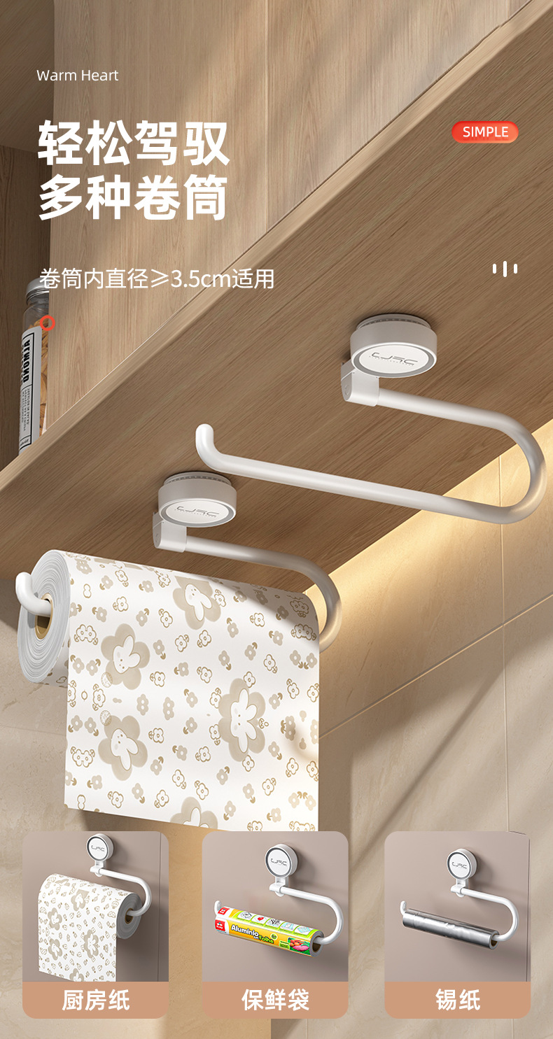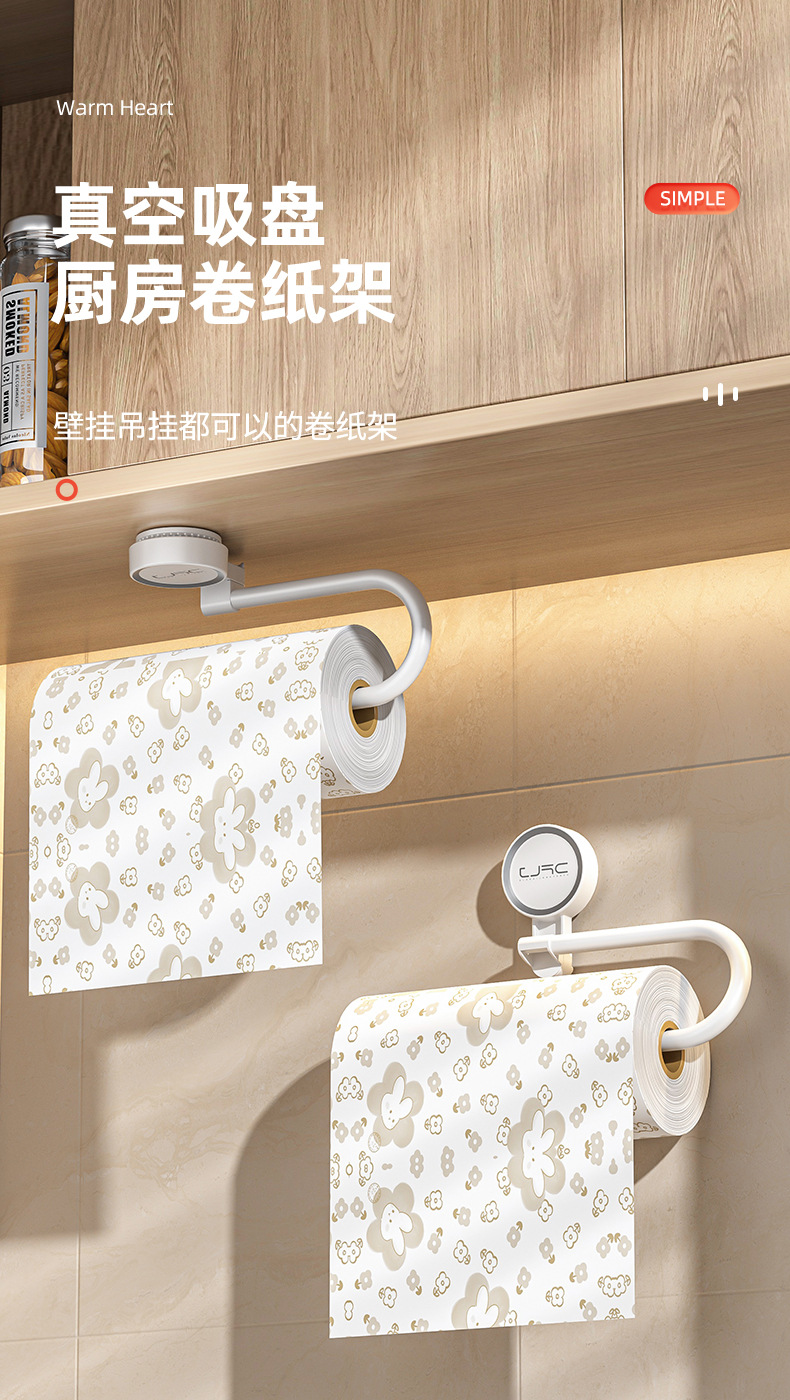 흡입 컵 주방 티슈 랙 벽 매달려 종이 랙 펀치 프리 롤 종이 랙 게으른 헝겊 걸이로드 오일 흡수 종이 랙스토어 가기