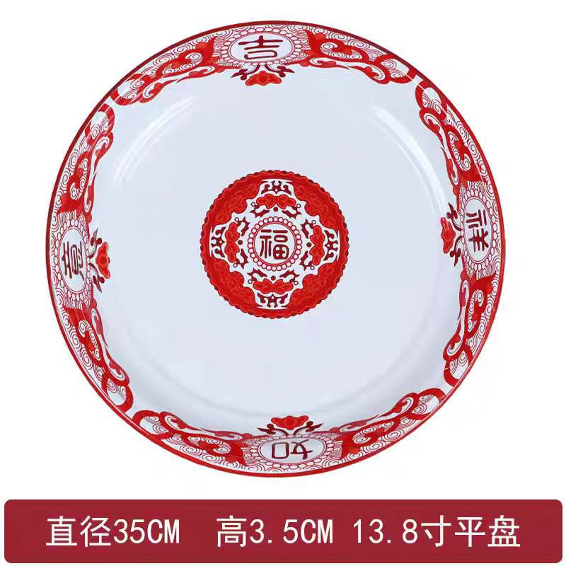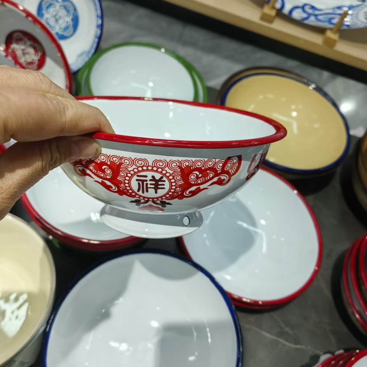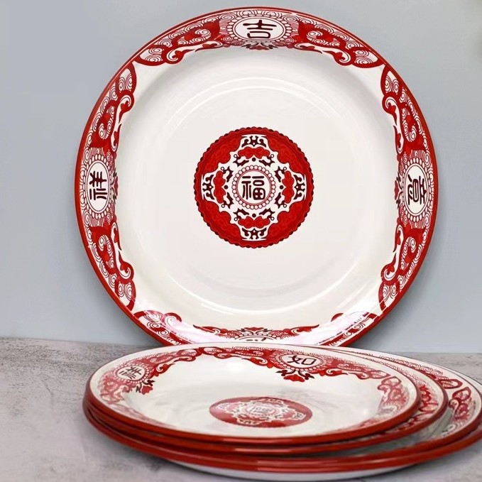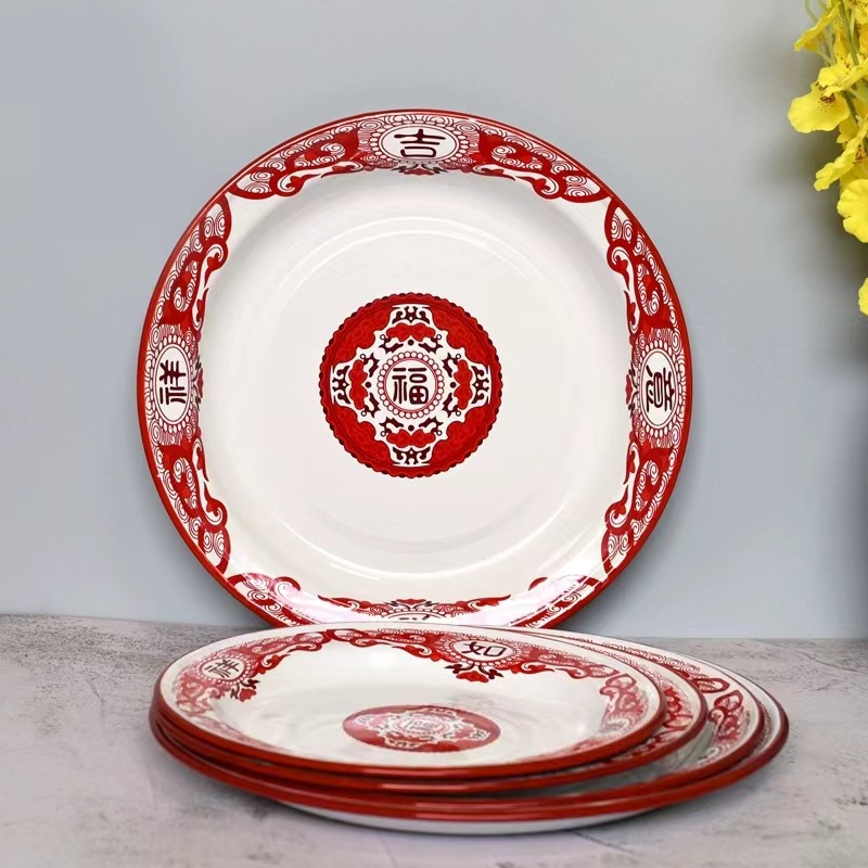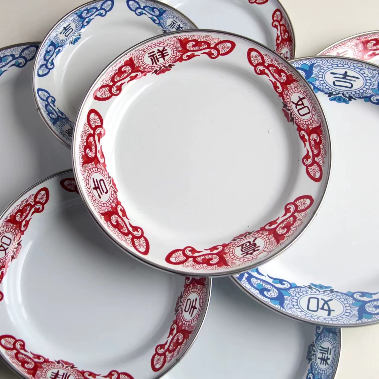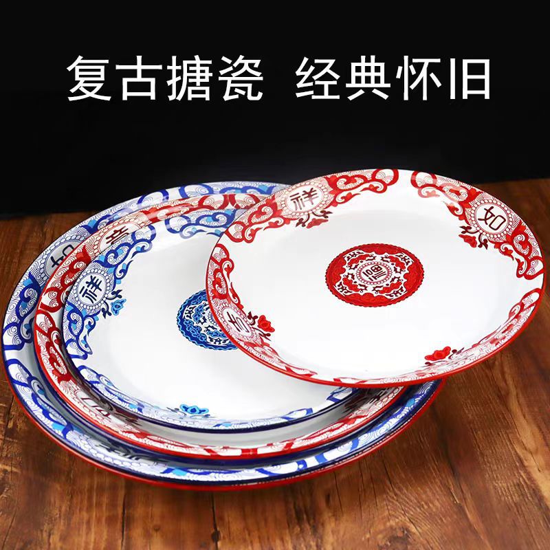 에나멜 접시, 행운과 소원을 기원하는 접시, 두꺼운 복고풍 클래식 중국식 원형 과일 및 채소 접시, 에나멜 중국풍스토어 가기