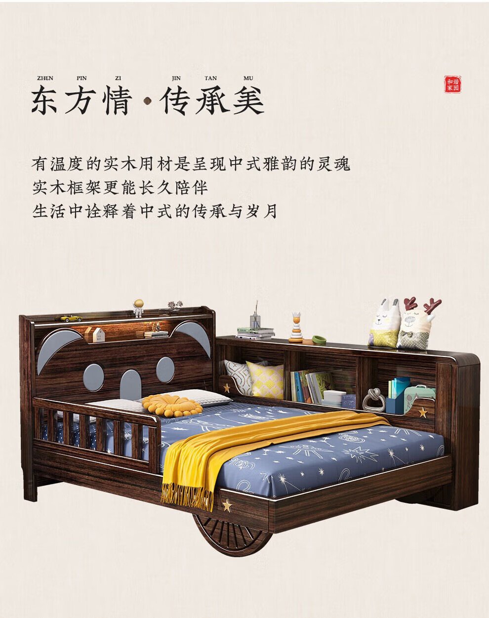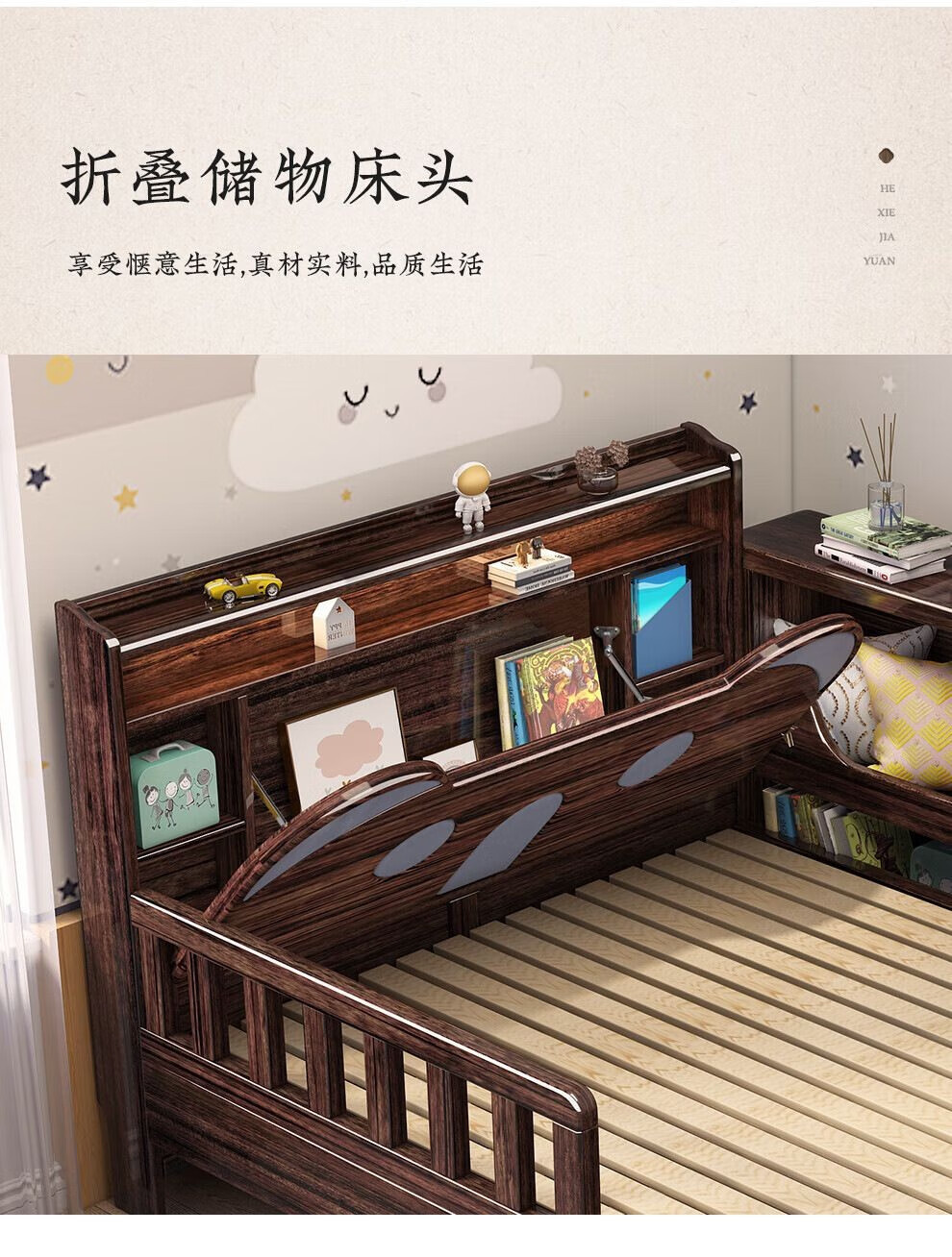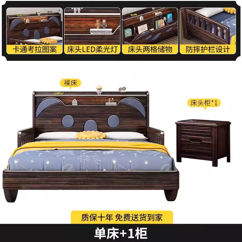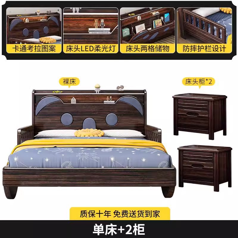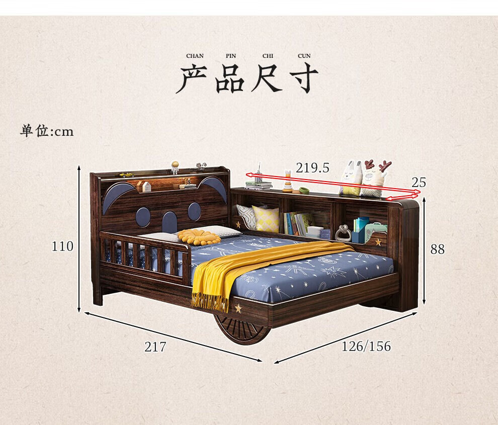 단단한 나무 어린이 침대 보라색 금색 샌달 우드 어린이 방 가벼운 책장 침대로 넓어진 청소년 난간 스티칭