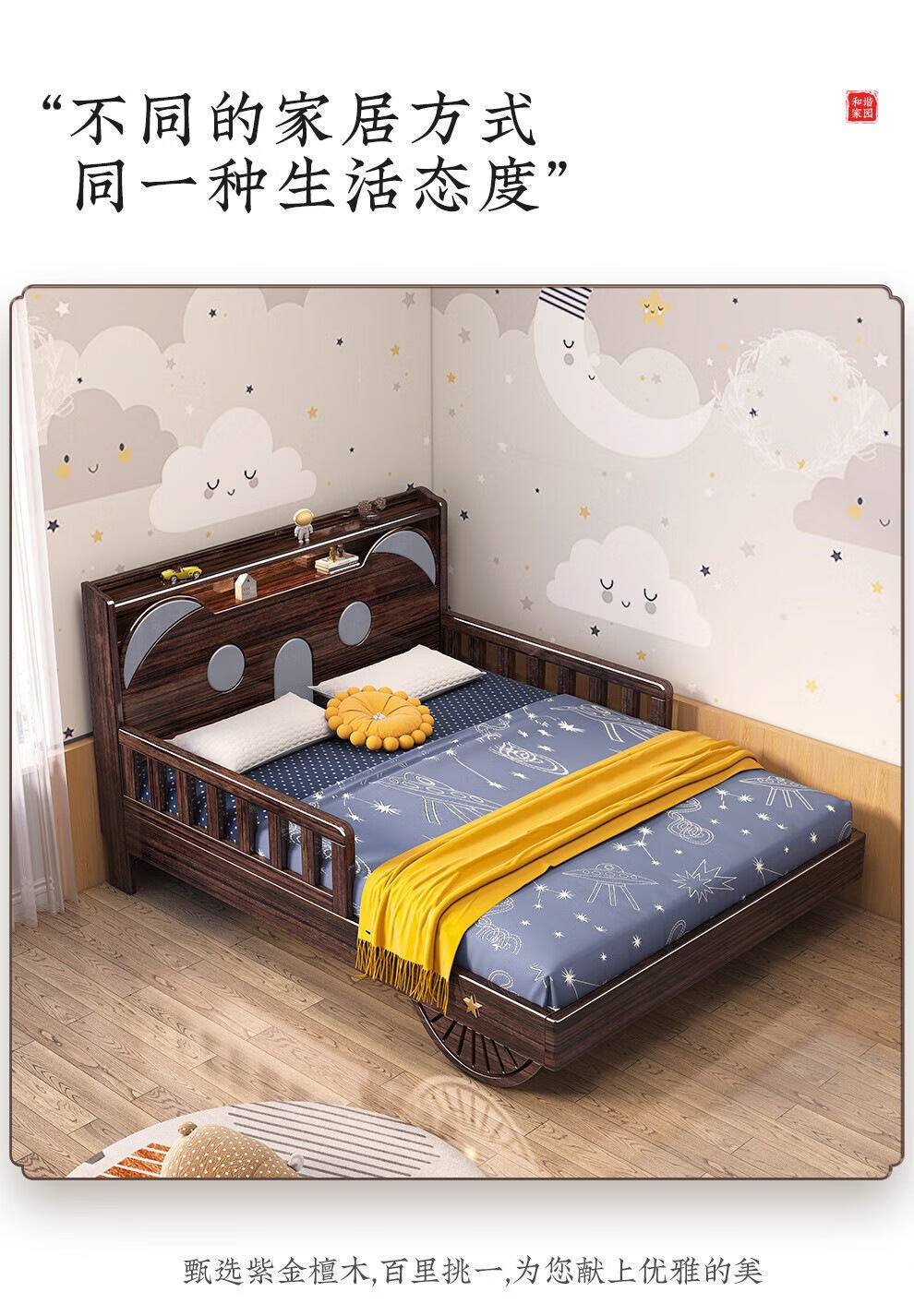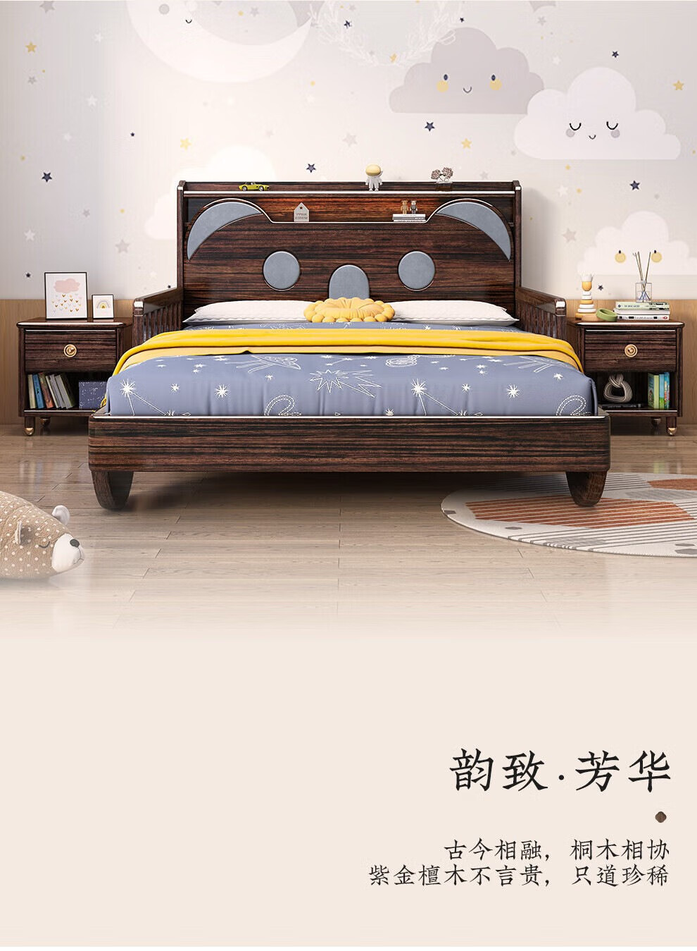• 보라색 백단 어린이 침대