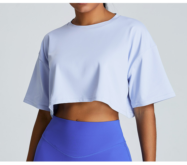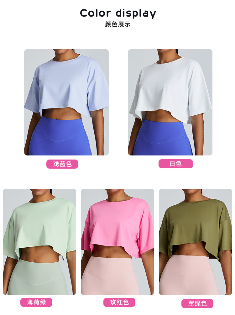 새로운 여름 통기성 빠른 건조 요가 옷 여성의 느슨한 달리기 캐주얼 올 매치 피트니스 최고 스포츠 반팔 티셔츠