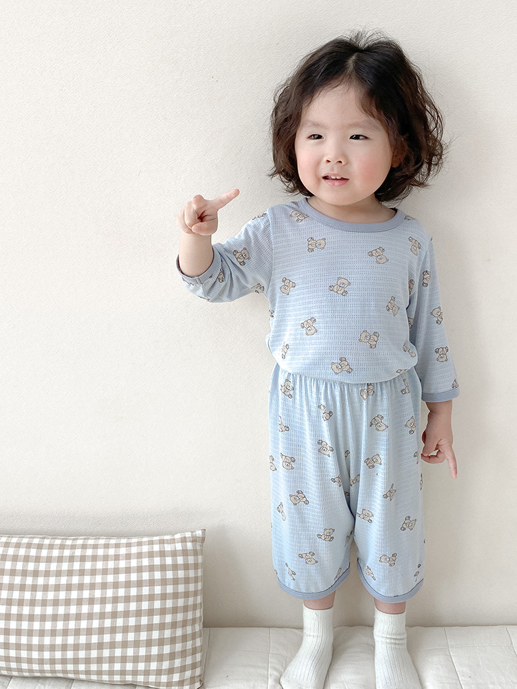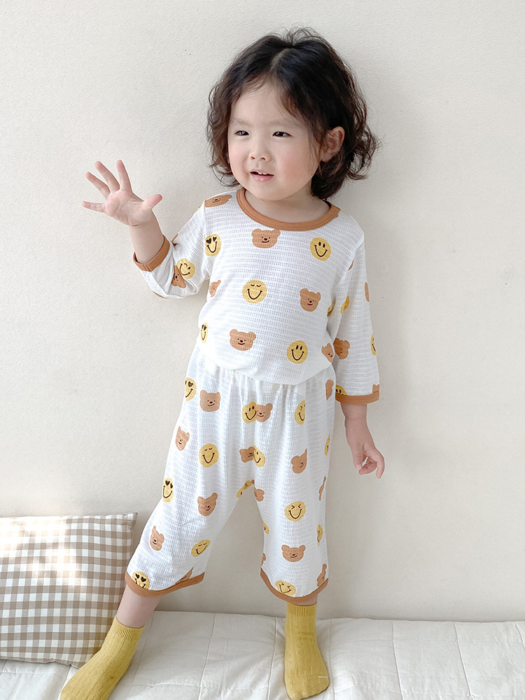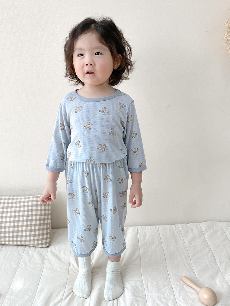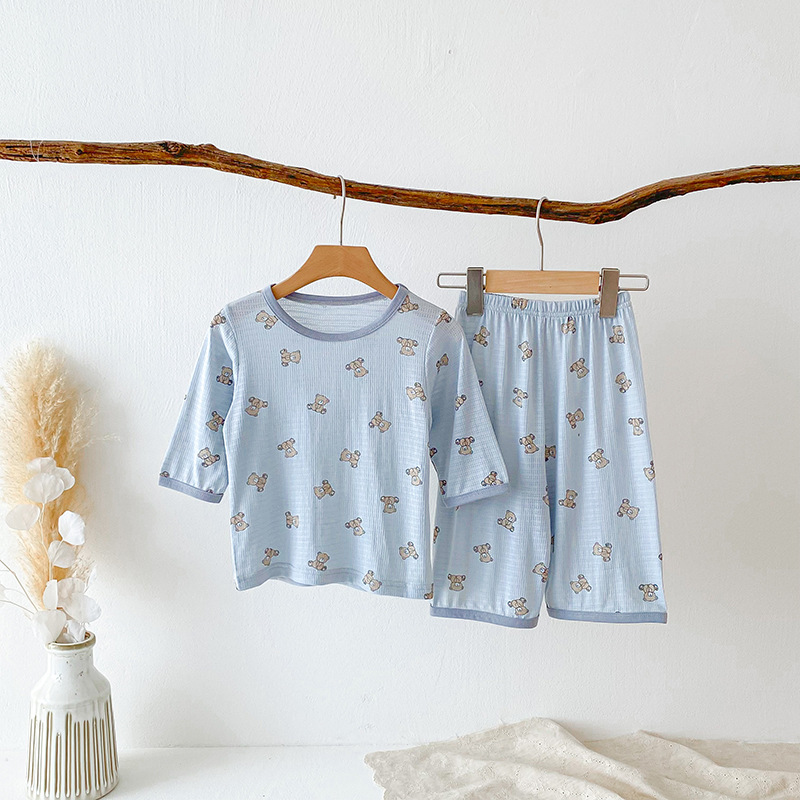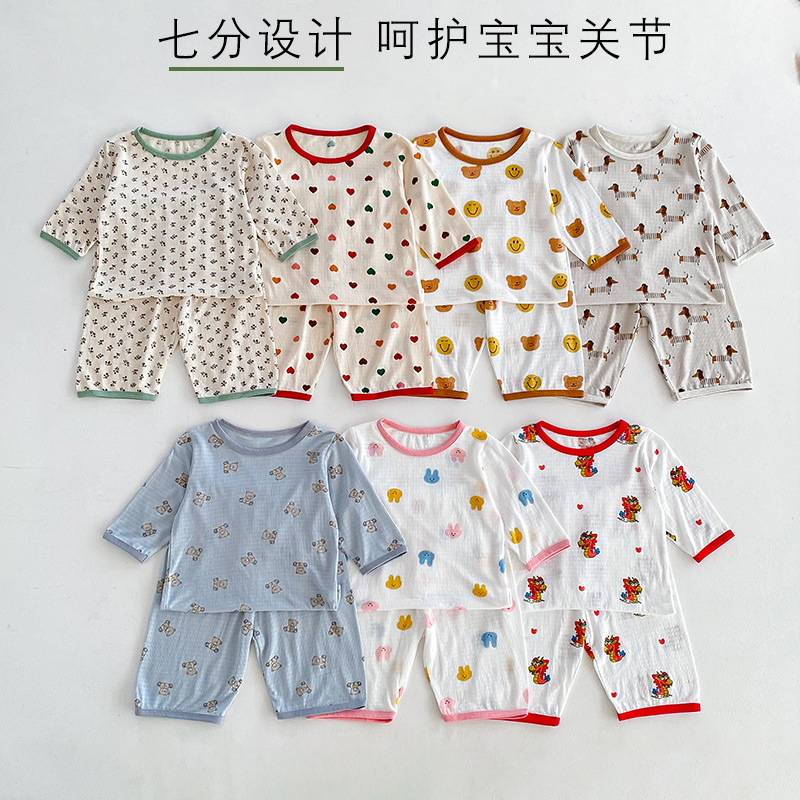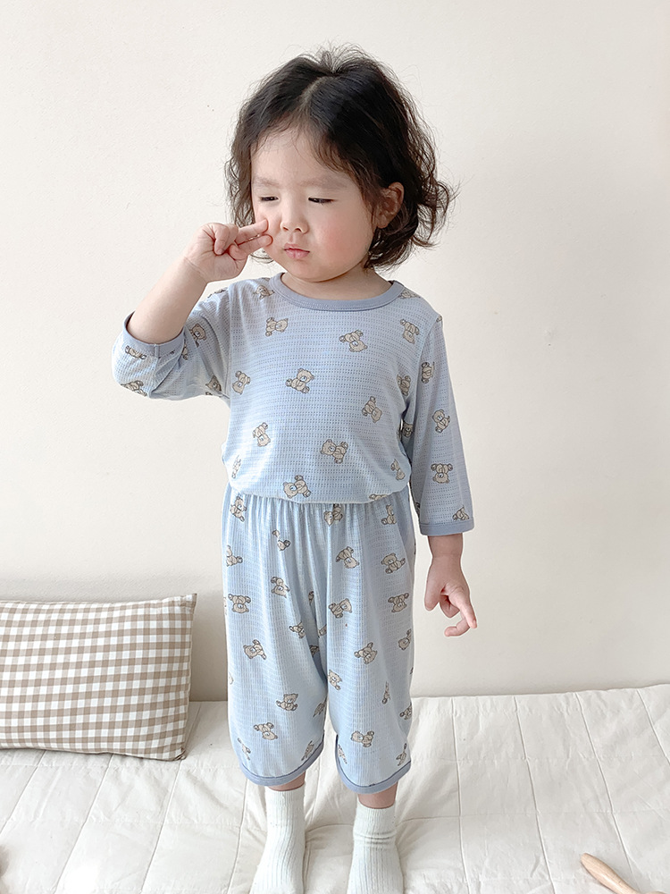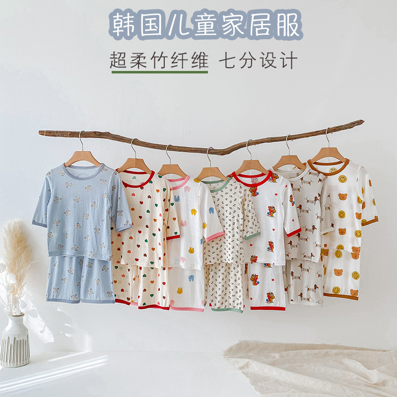 여름 어린이 잠옷 얇은 대나무 섬유 아기 홈 의류 소년과 소녀 7 점 에어컨 의류 잠옷 세트스토어 가기