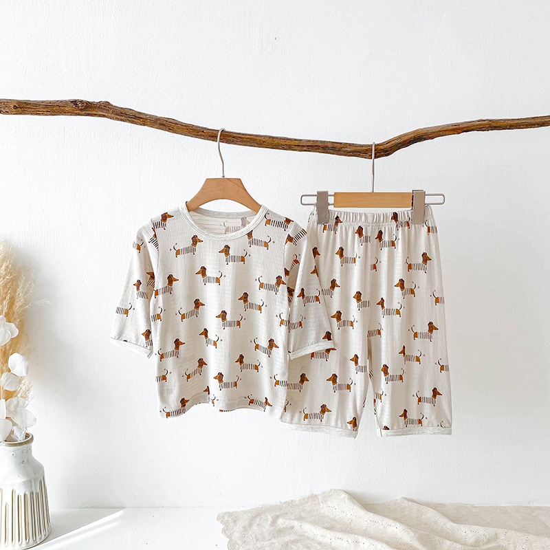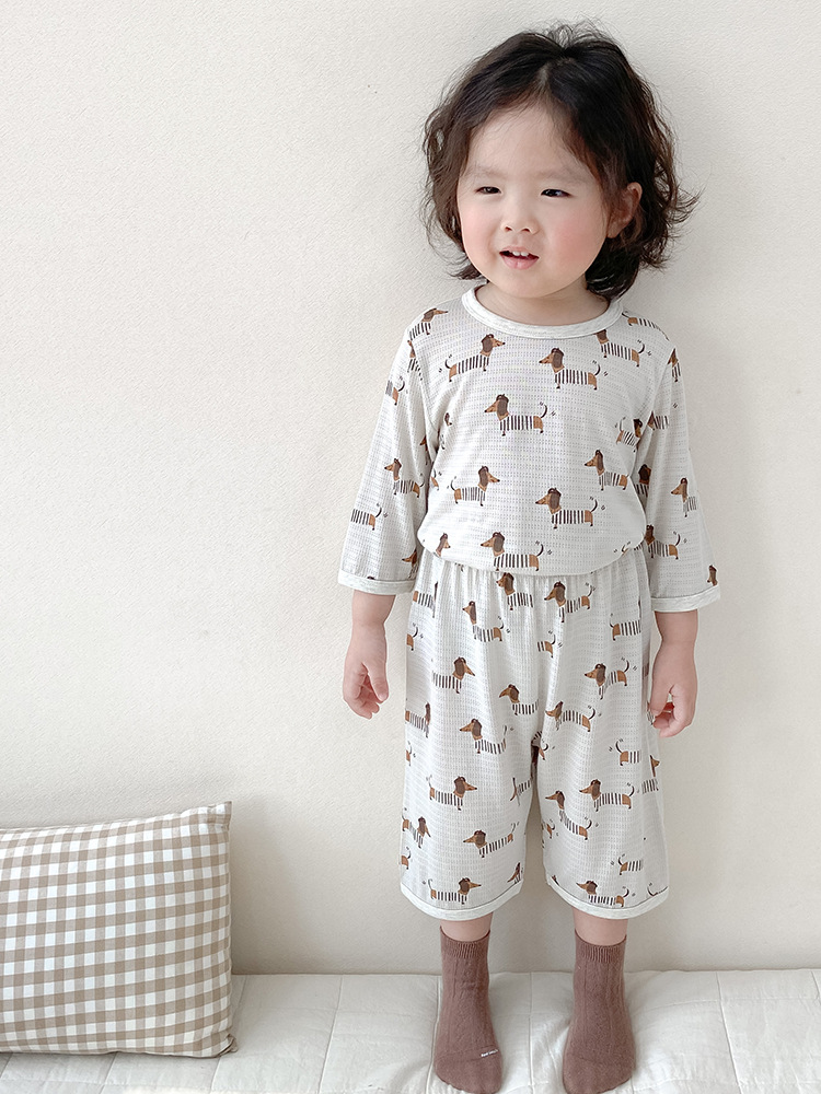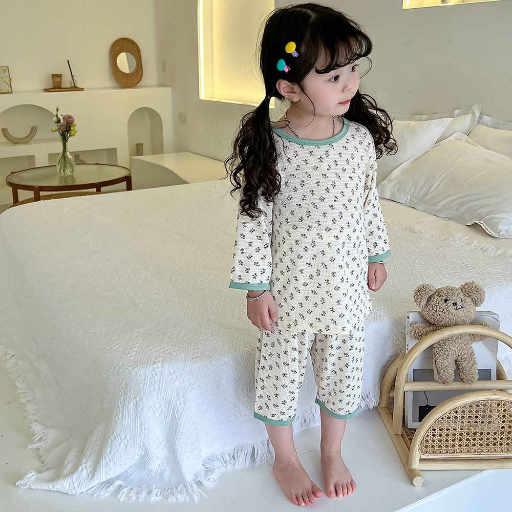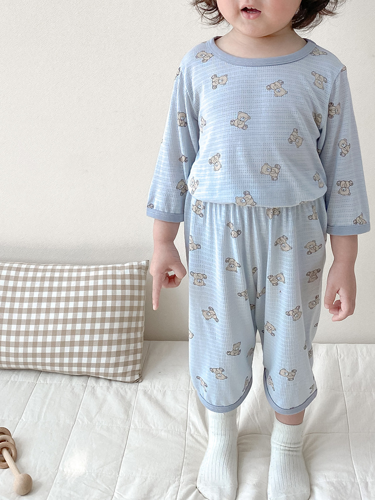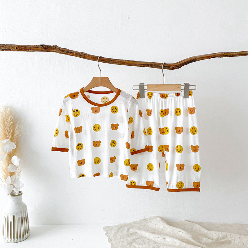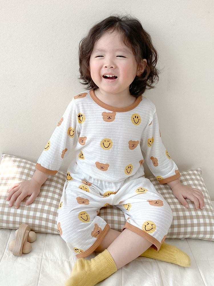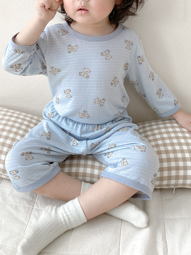 여름 어린이 잠옷 얇은 대나무 섬유 아기 홈 의류 소년과 소녀 7 점 에어컨 의류 잠옷 세트스토어 가기