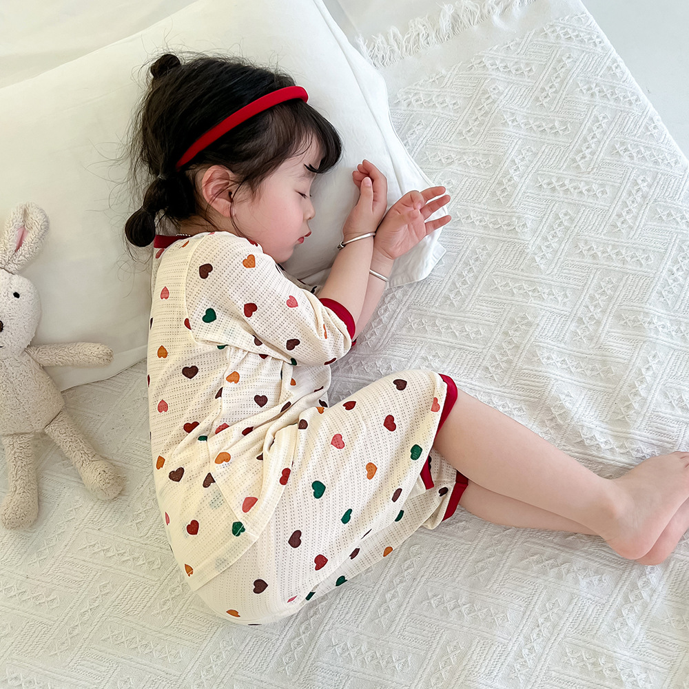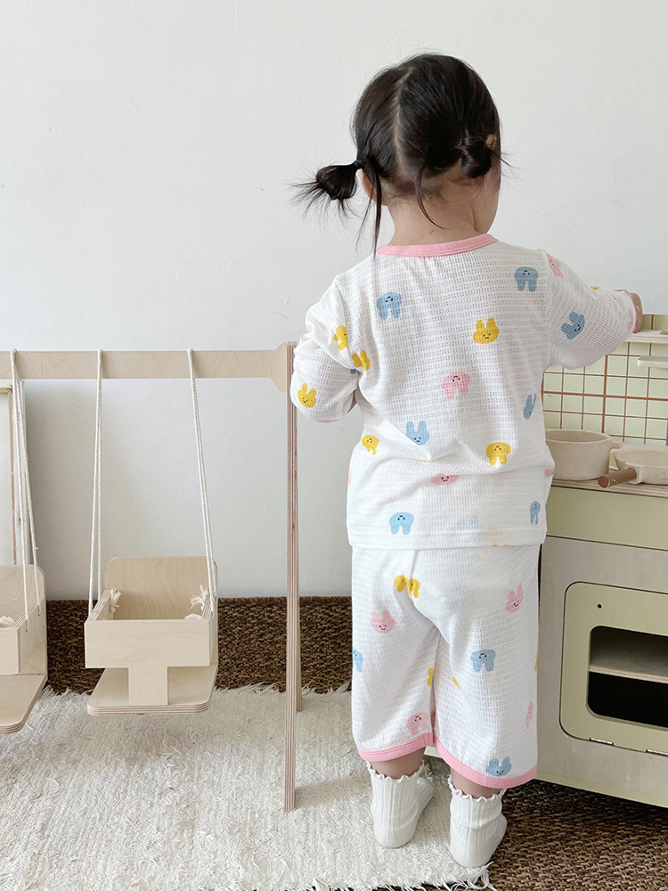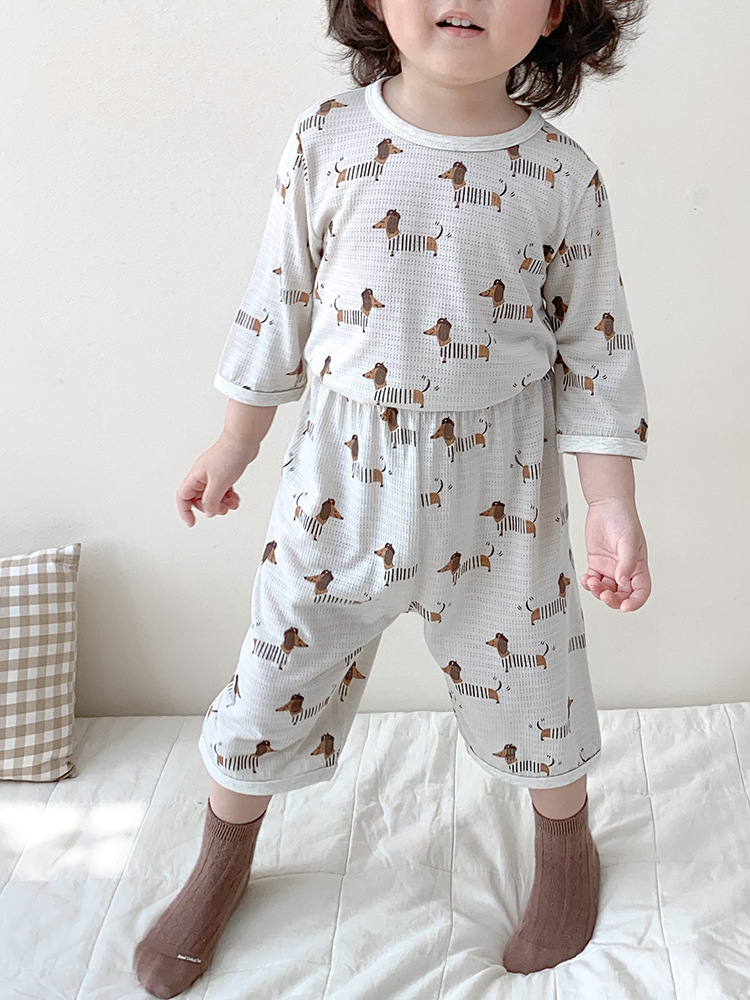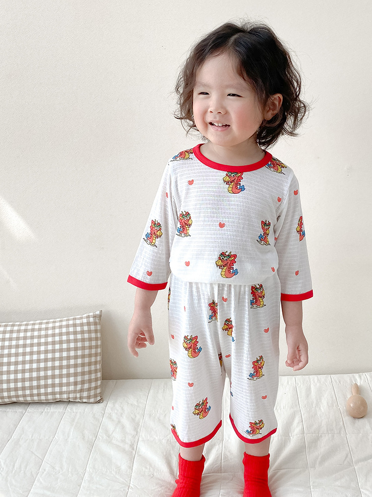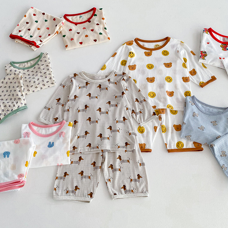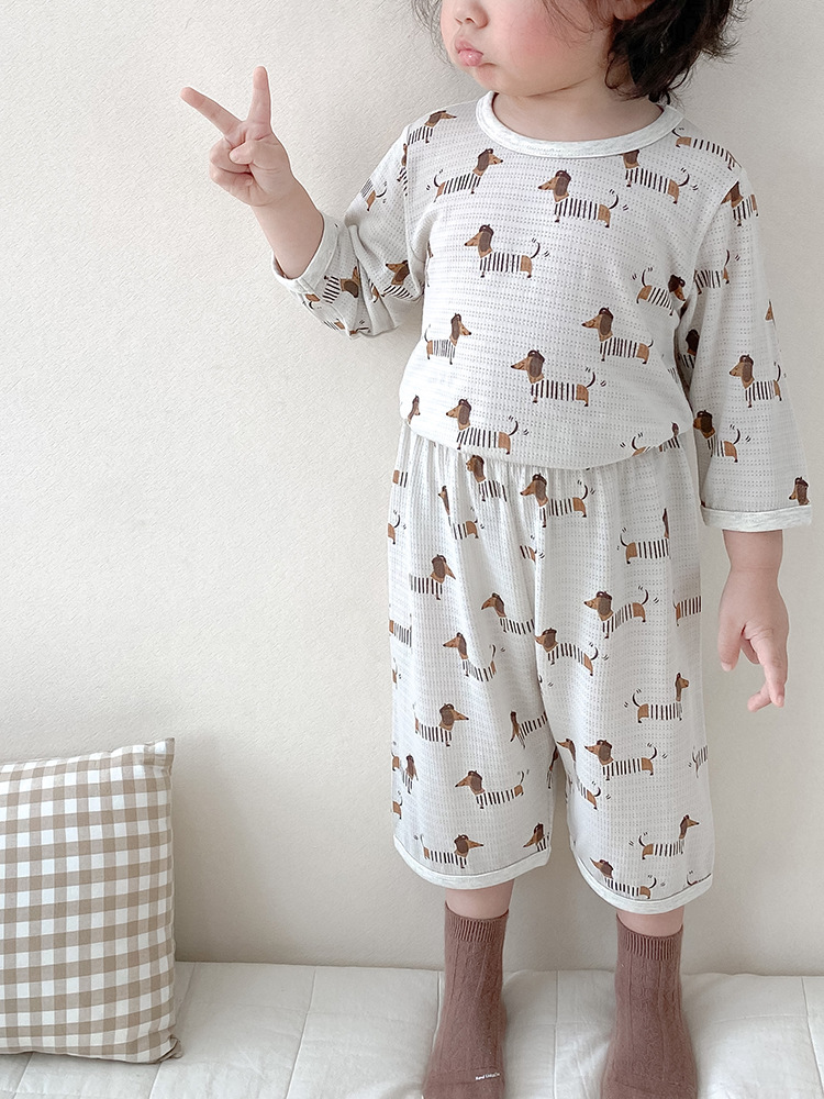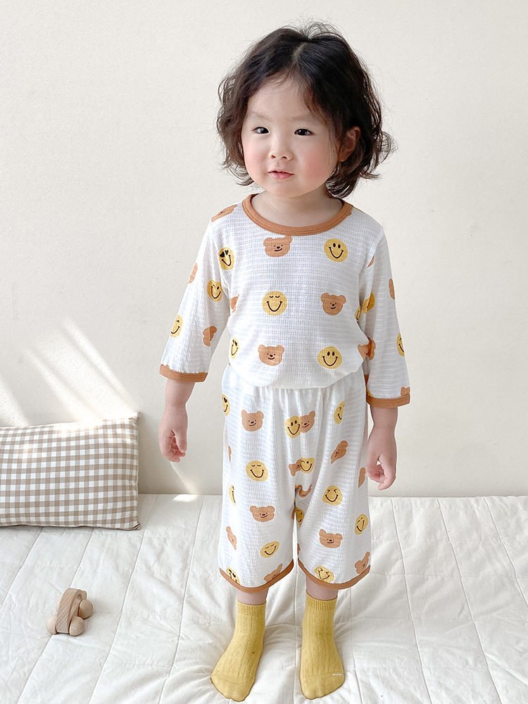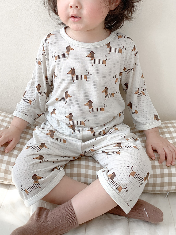 여름 어린이 잠옷 얇은 대나무 섬유 아기 홈 의류 소년과 소녀 7 점 에어컨 의류 잠옷 세트스토어 가기