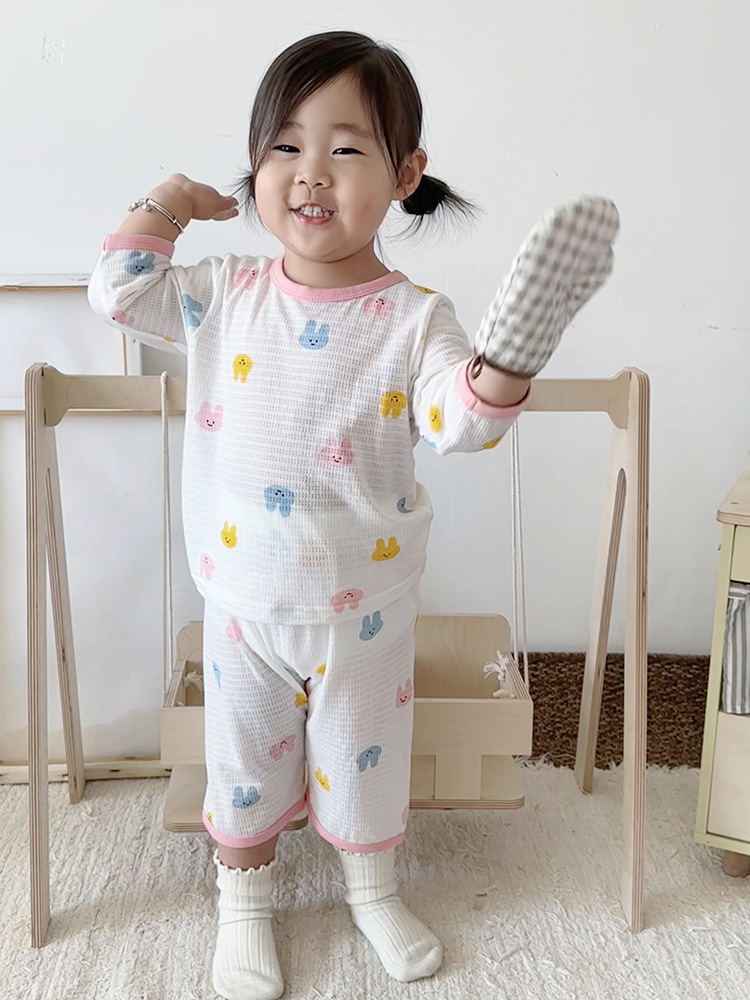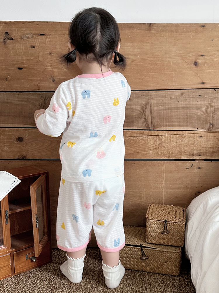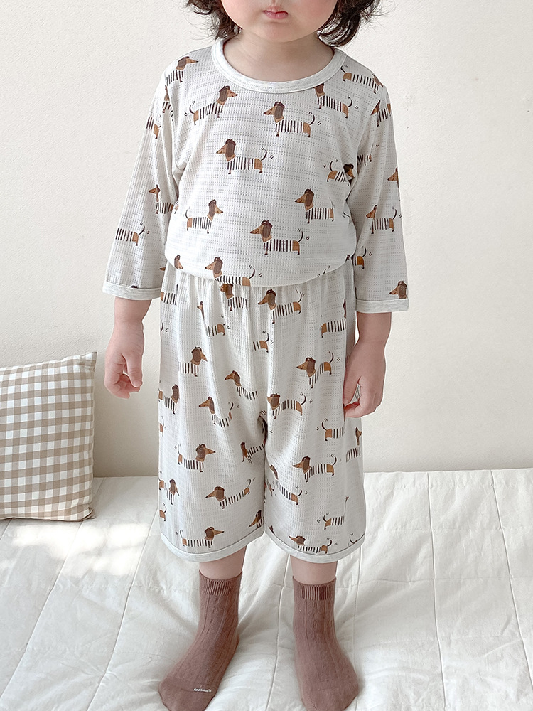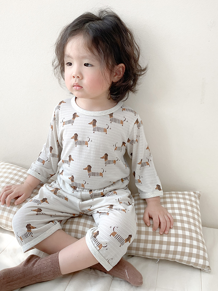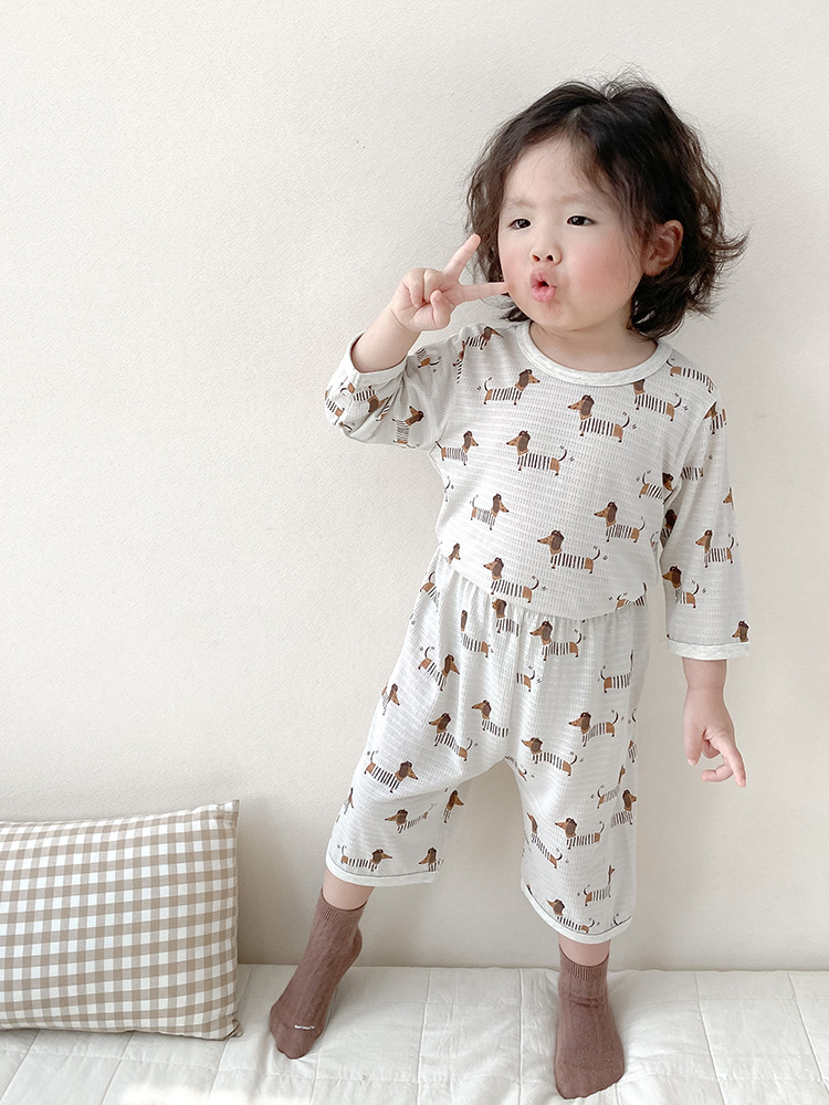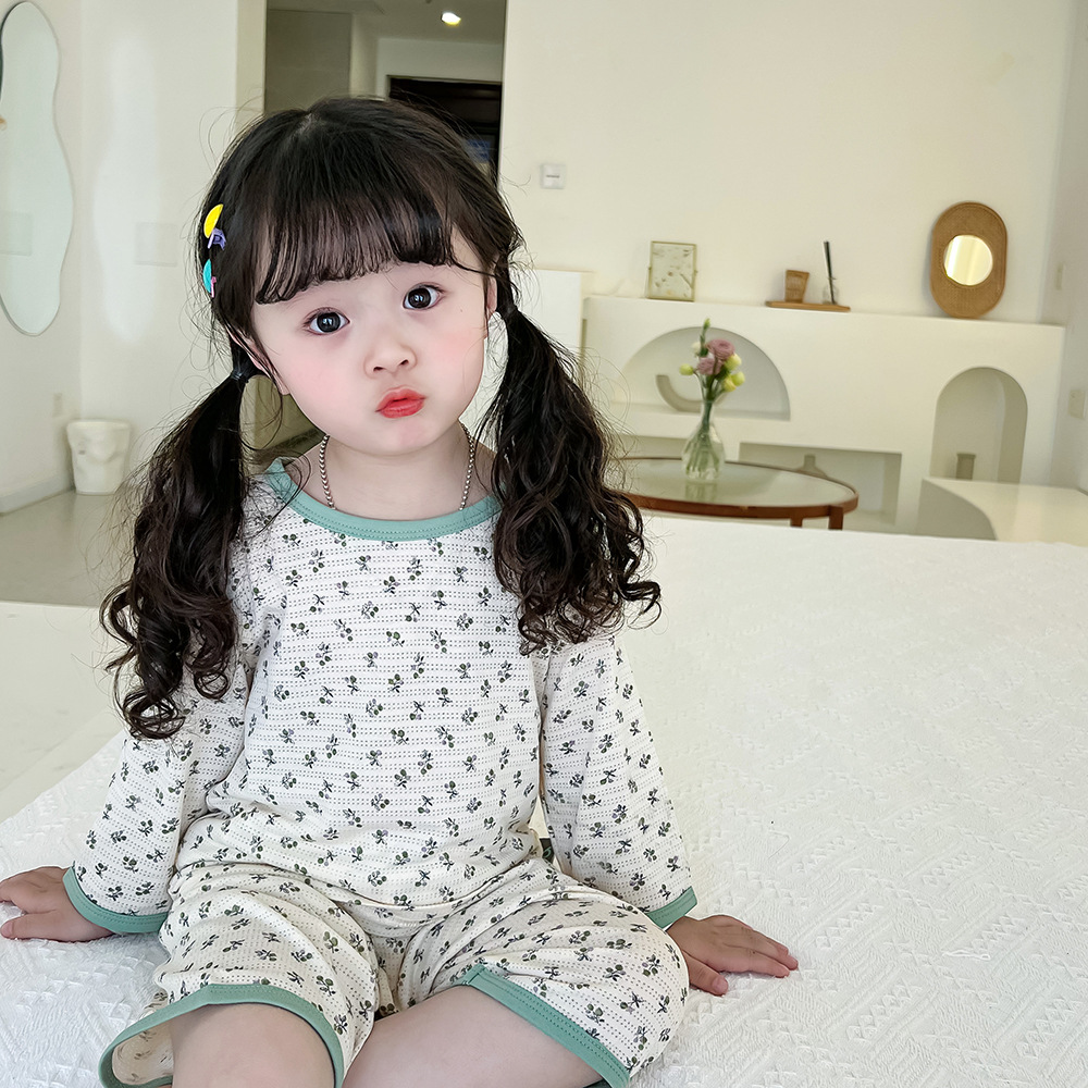 여름 어린이 잠옷 얇은 대나무 섬유 아기 홈 의류 소년과 소녀 7 점 에어컨 의류 잠옷 세트스토어 가기