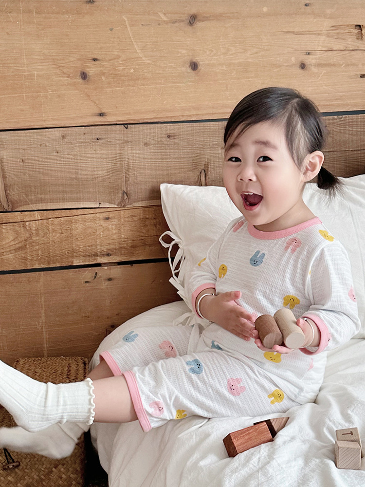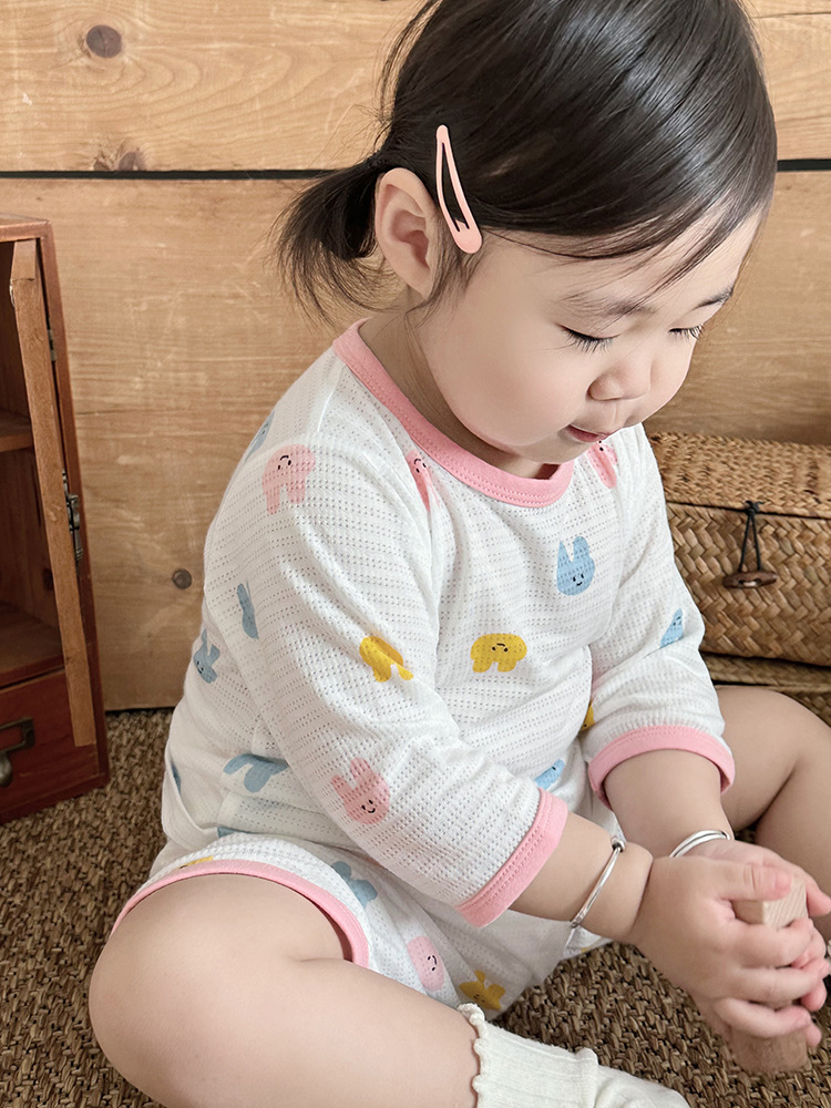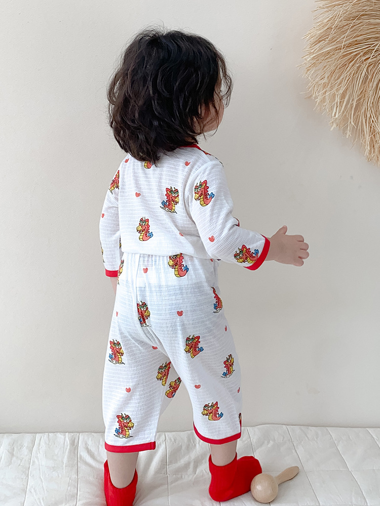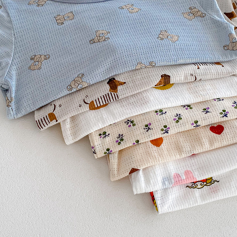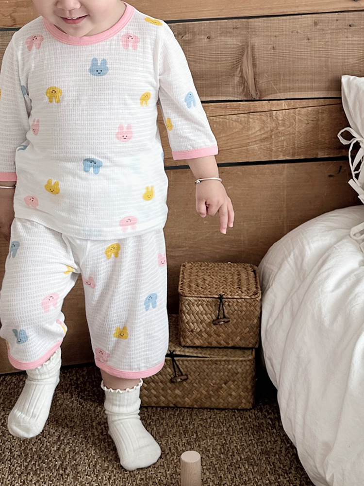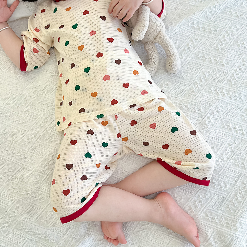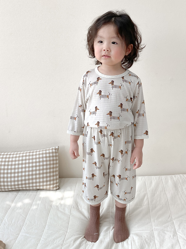 여름 어린이 잠옷 얇은 대나무 섬유 아기 홈 의류 소년과 소녀 7 점 에어컨 의류 잠옷 세트스토어 가기