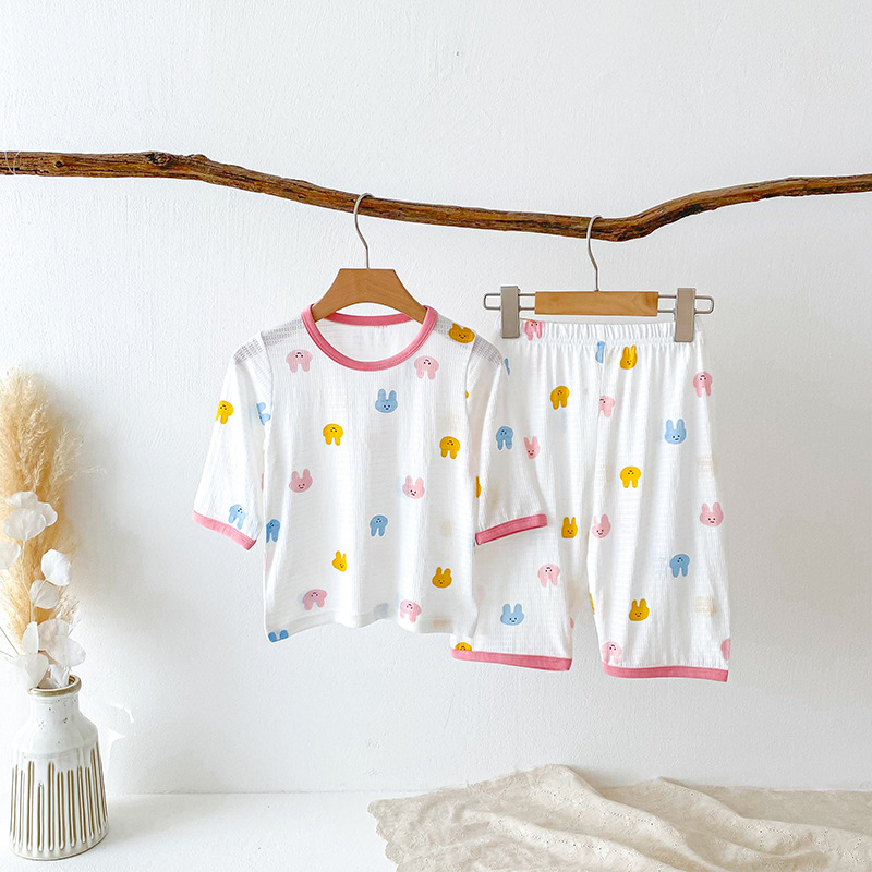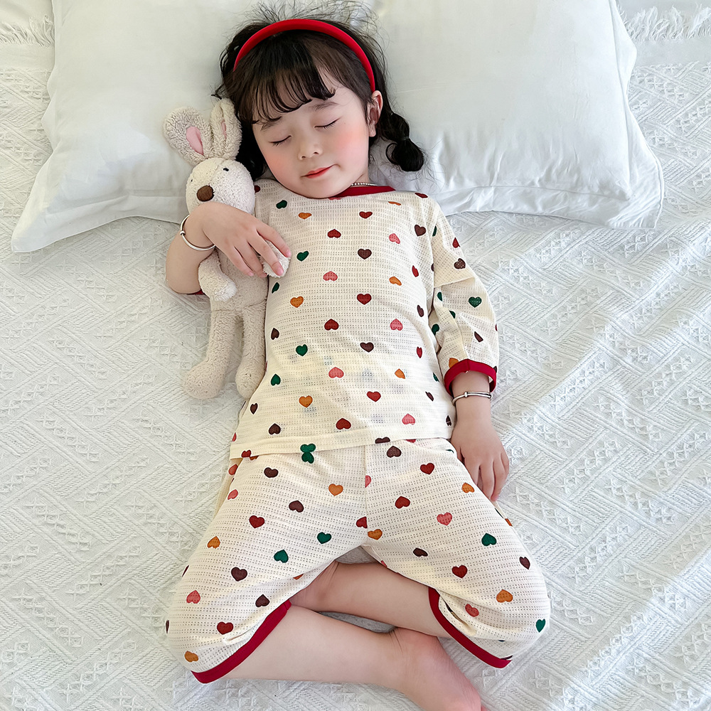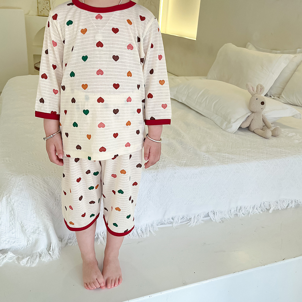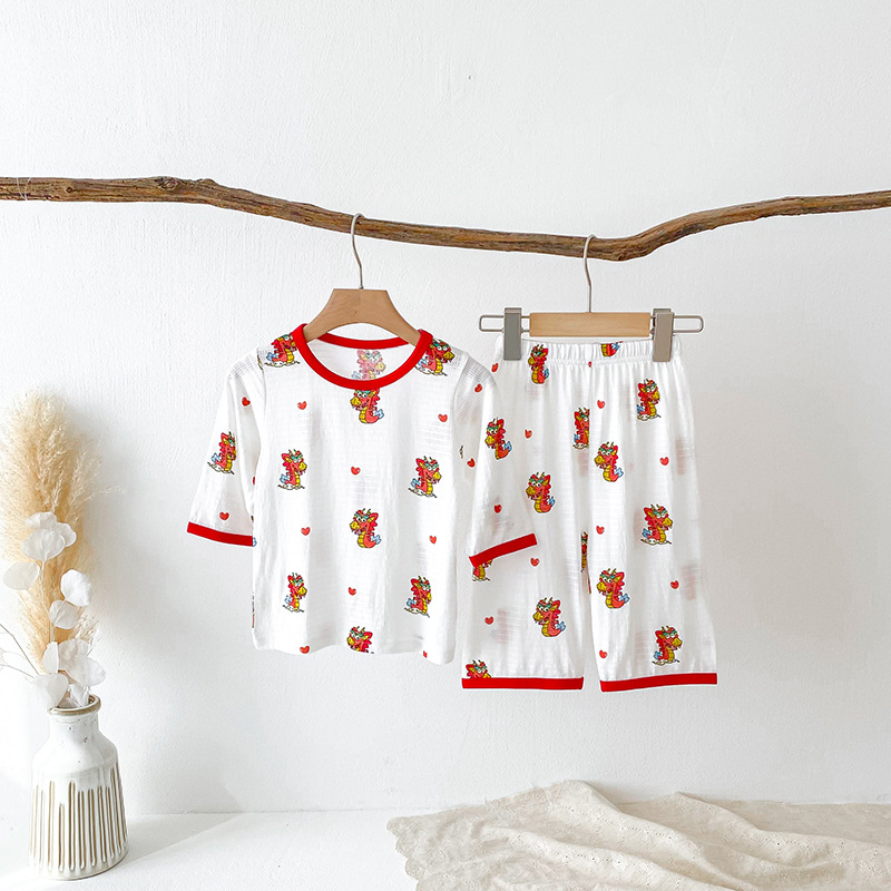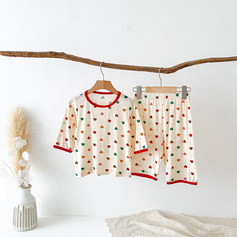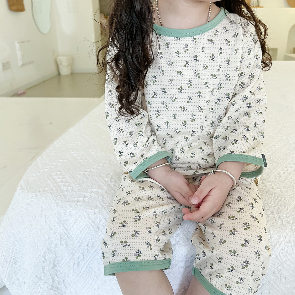 여름 어린이 잠옷 얇은 대나무 섬유 아기 홈 의류 소년과 소녀 7 점 에어컨 의류 잠옷 세트