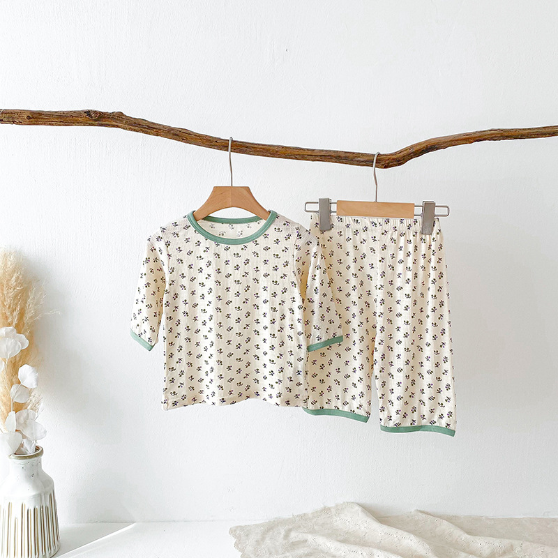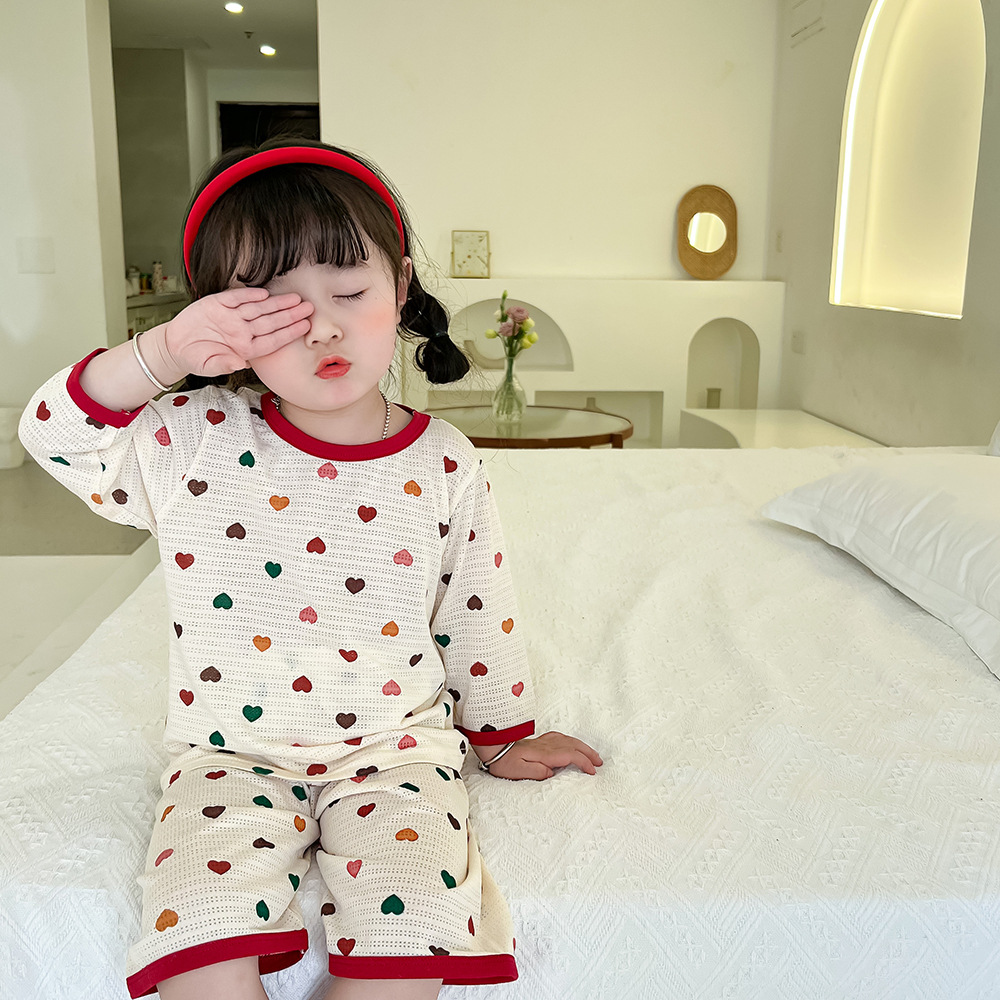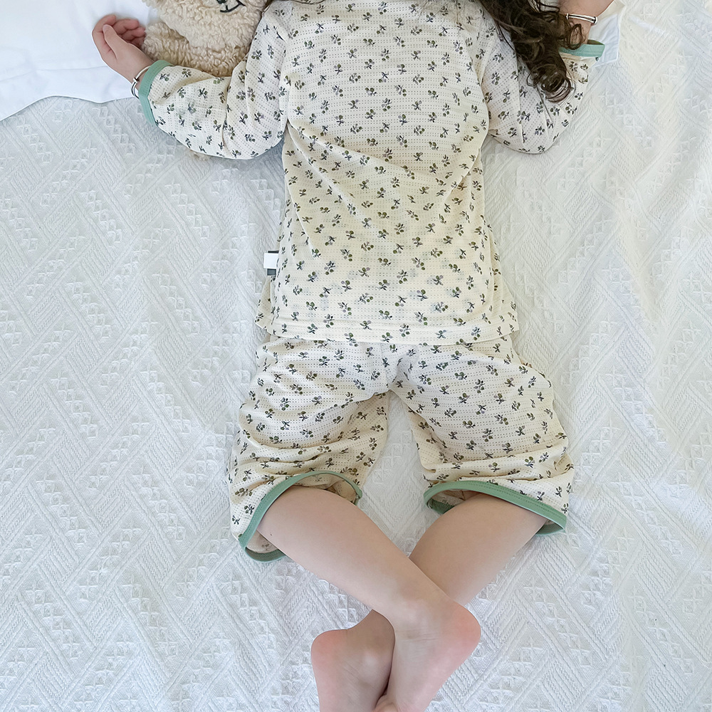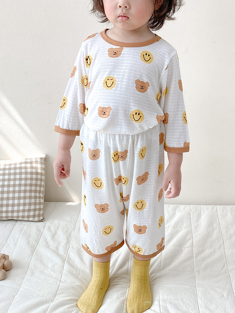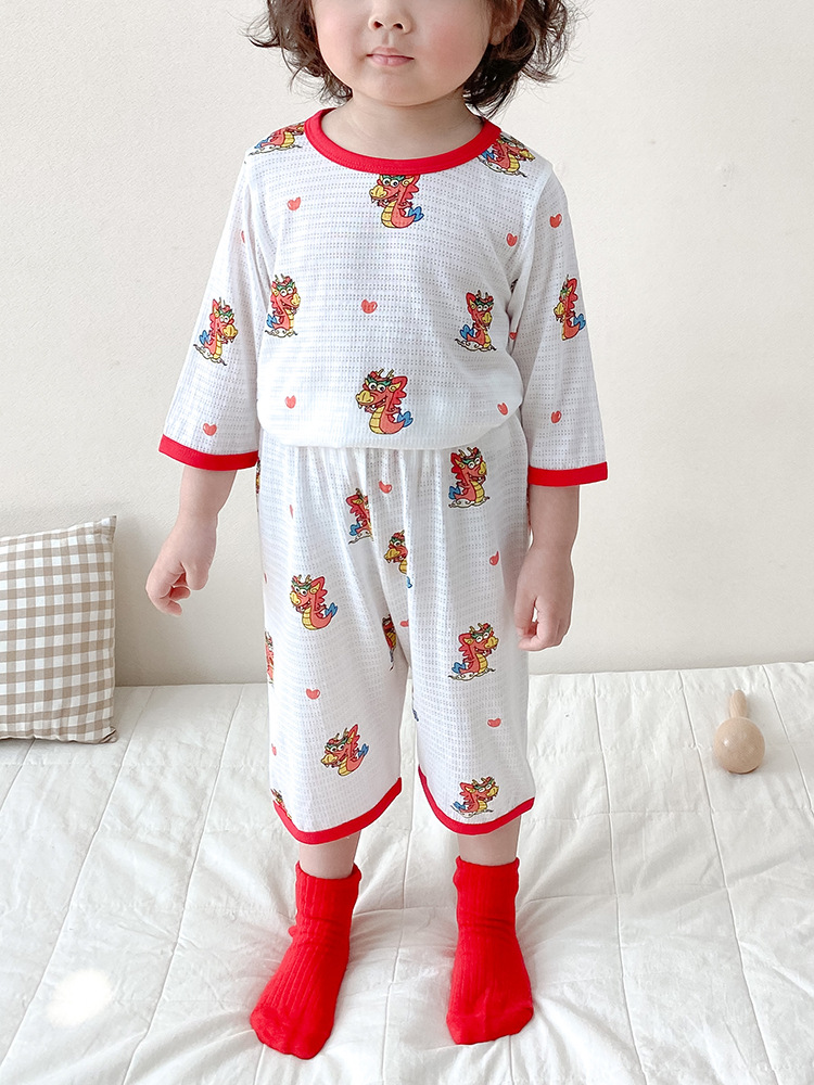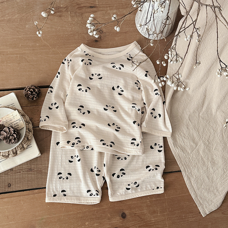 여름 어린이 잠옷 얇은 대나무 섬유 아기 홈 의류 소년과 소녀 7 점 에어컨 의류 잠옷 세트
