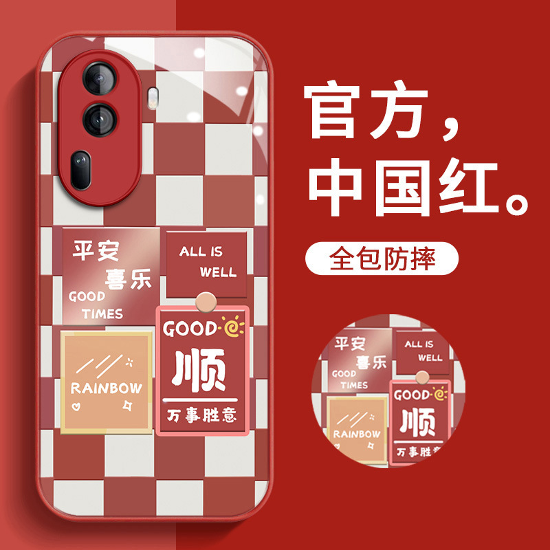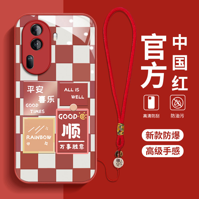 • [유리 껍질] 레드 C- BL2808 3 차원 격자 무늬 + 창푸 붉은 끈