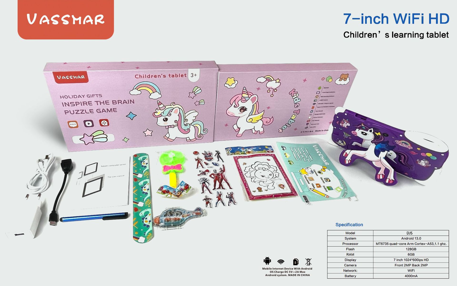7 인치 공장 도매 2 + 16G 안드로이드 스마트 조랑말 학습 게임 블루투스 어린이 태블릿 국경 HD스토어 가기
