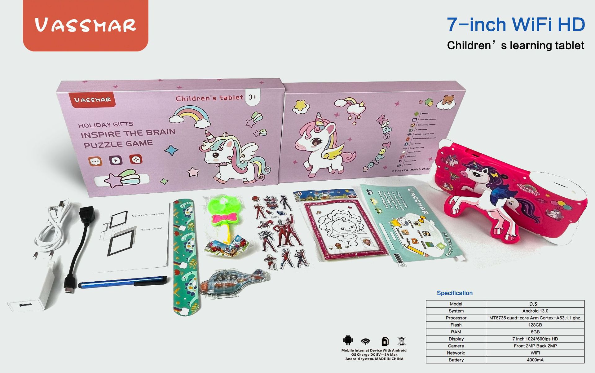 7 인치 공장 도매 2 + 16G 안드로이드 스마트 조랑말 학습 게임 블루투스 어린이 태블릿 국경 HD