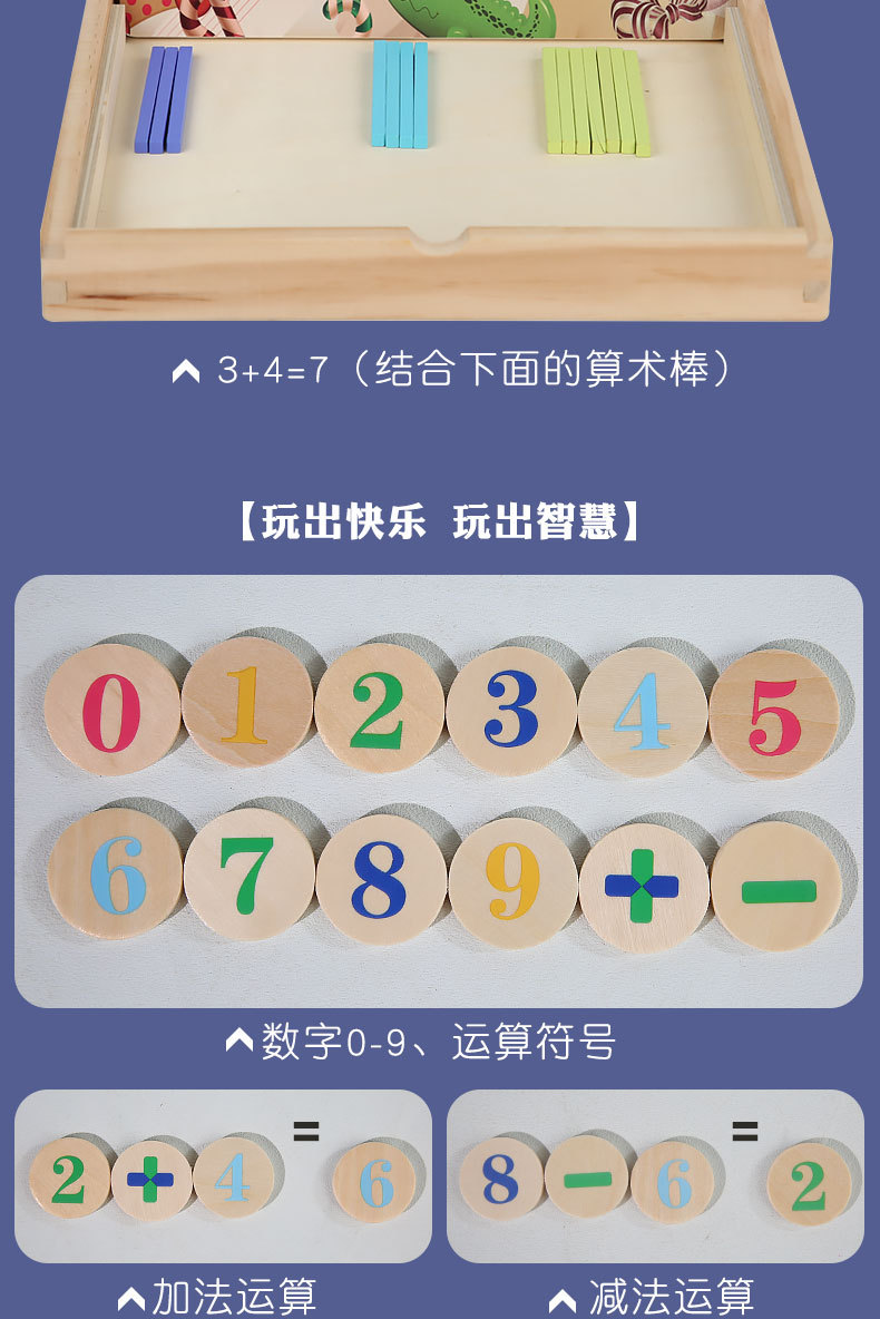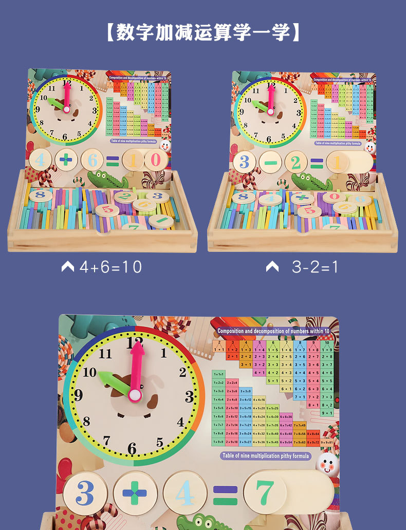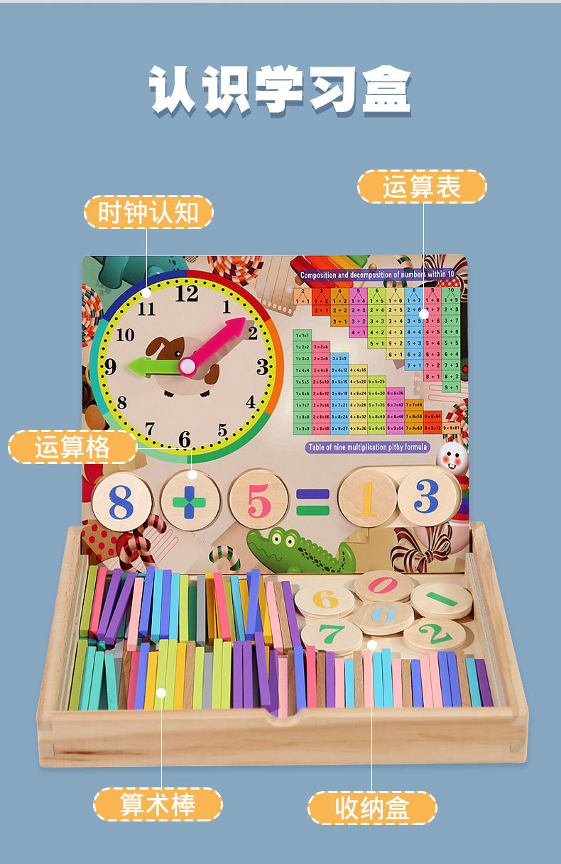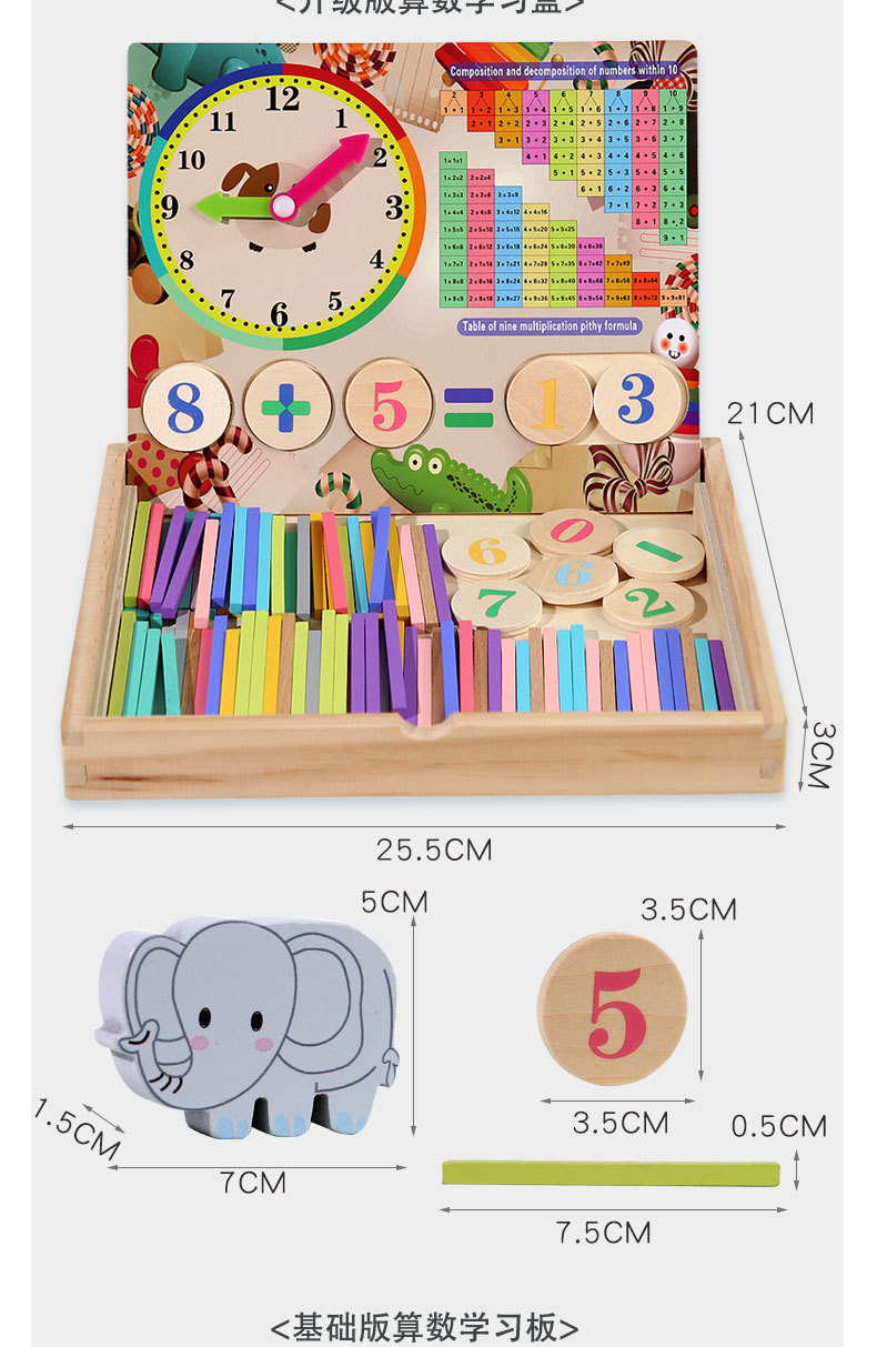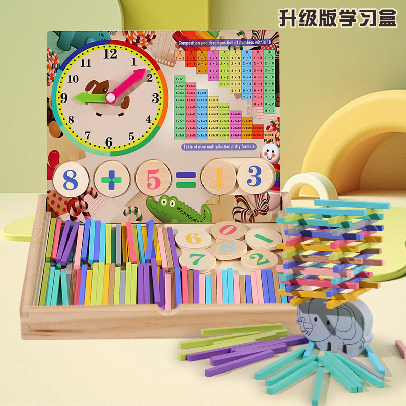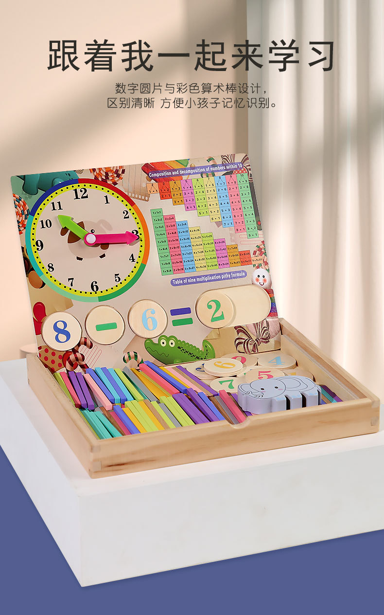 어린이 나무 다기능 산술 상자 교육 보조 아기의 산술 능력 학습 관심 조기 교육 장난감스토어 가기