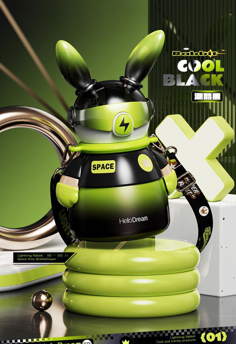 번개 토끼 공간 진공 컵 어린이 물 컵 소년 소녀 대용량 진공 컵 생일 선물