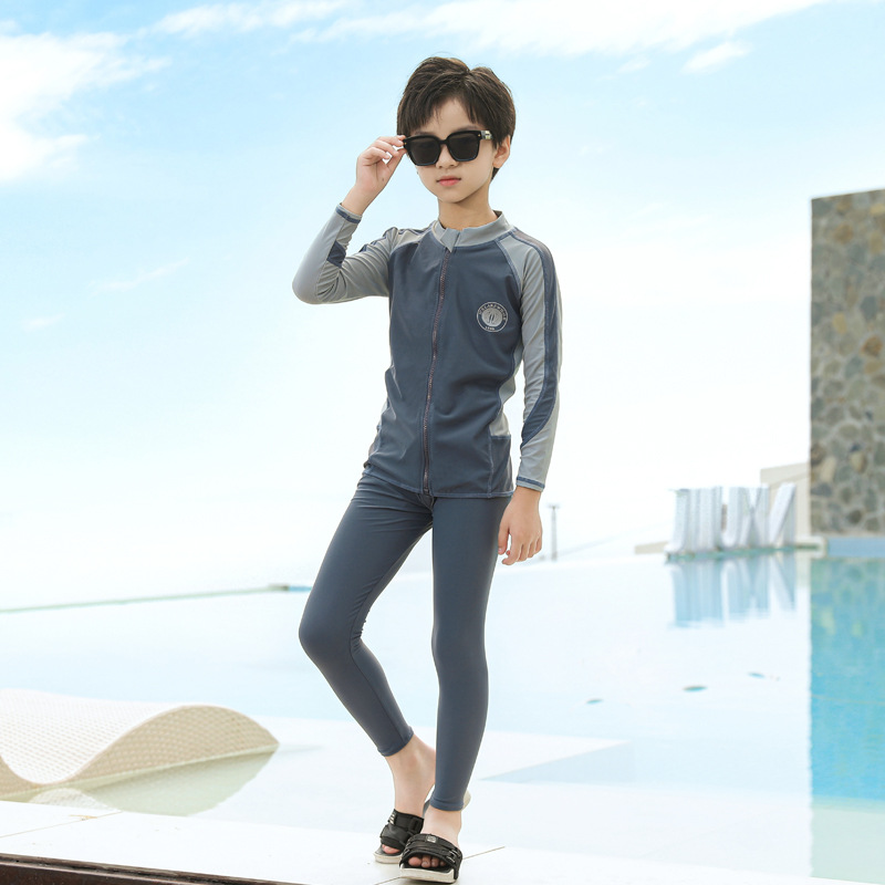 어린이 수영복 소년 소녀 여름 긴팔 바지 태양 보호 원피스 2024 새로운 중형 및 대형 어린이 수영복 제조업체