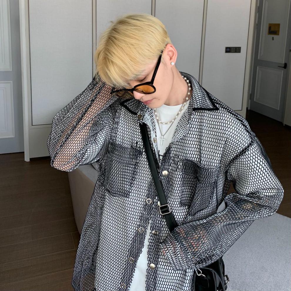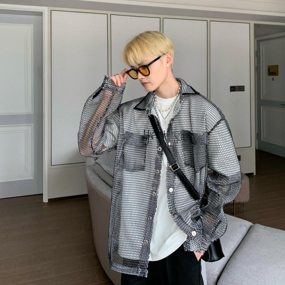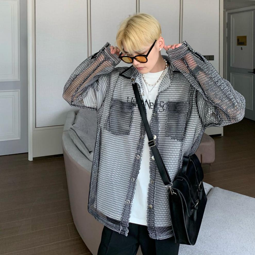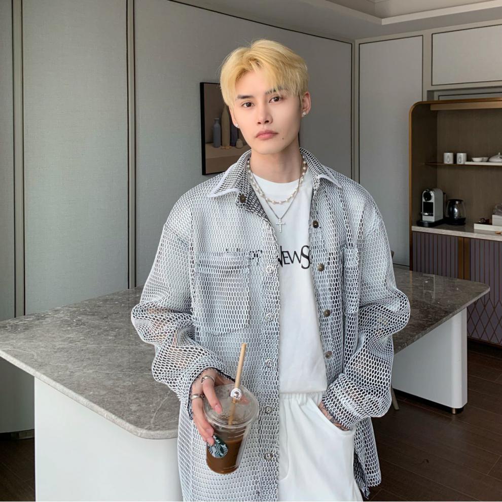 무료 배송 긴팔 남자 유행 올매치 잘 생긴 여름 통기성 할로우 아웃 간단한 재킷 남자 빅 브랜드 하이 엔드 셔츠스토어 가기