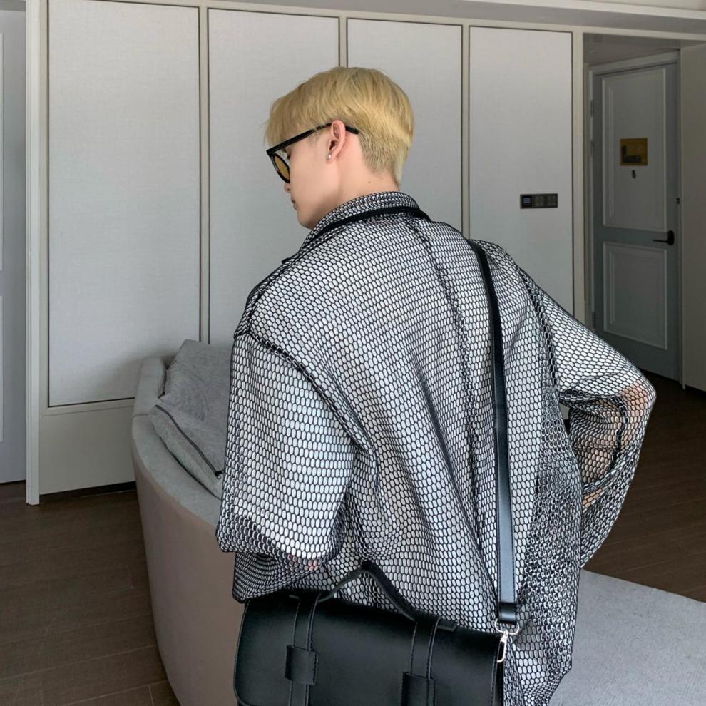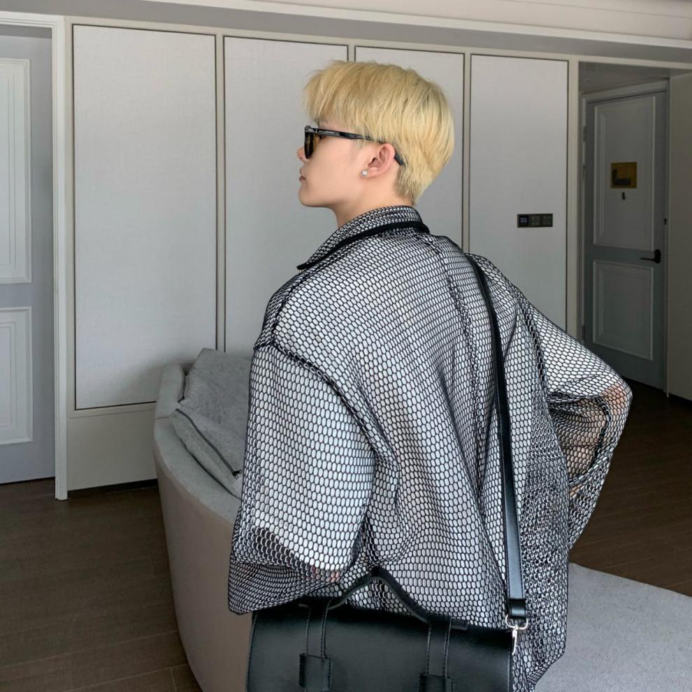 무료 배송 긴팔 남자 유행 올매치 잘 생긴 여름 통기성 할로우 아웃 간단한 재킷 남자 빅 브랜드 하이 엔드 셔츠