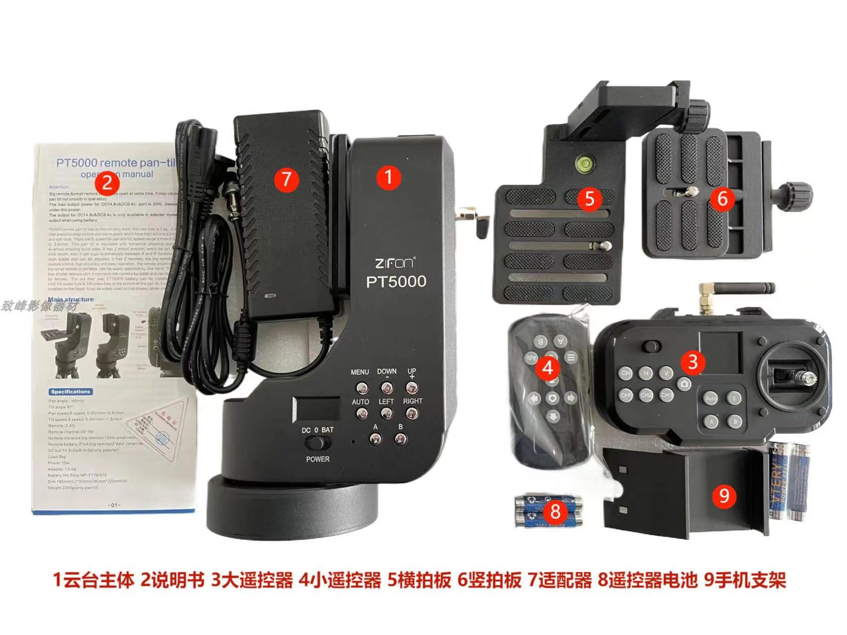 Zhifeng PT5000 원격 제어 전기 팬 틸트는 소니 캐논 카메라 마이크로 단일 휴대 전화 비디오 라이브 미러에 적합합니다.