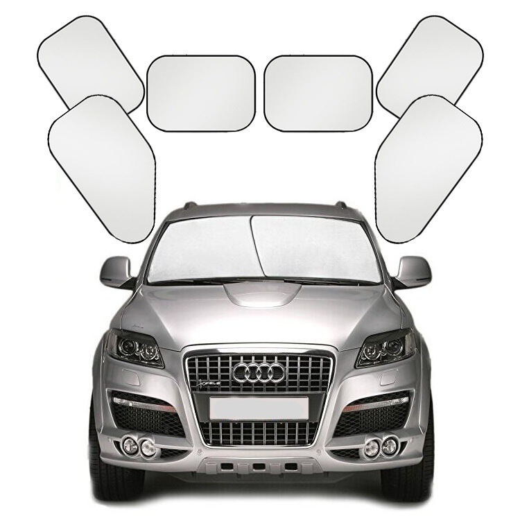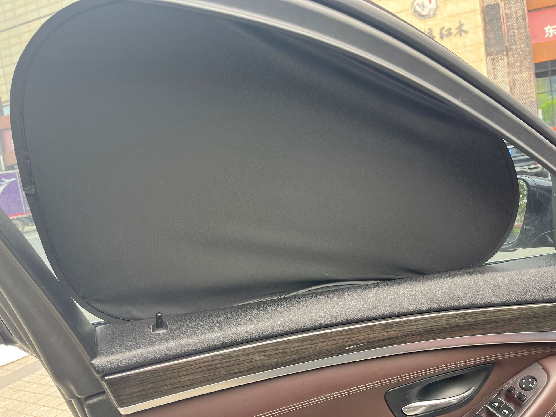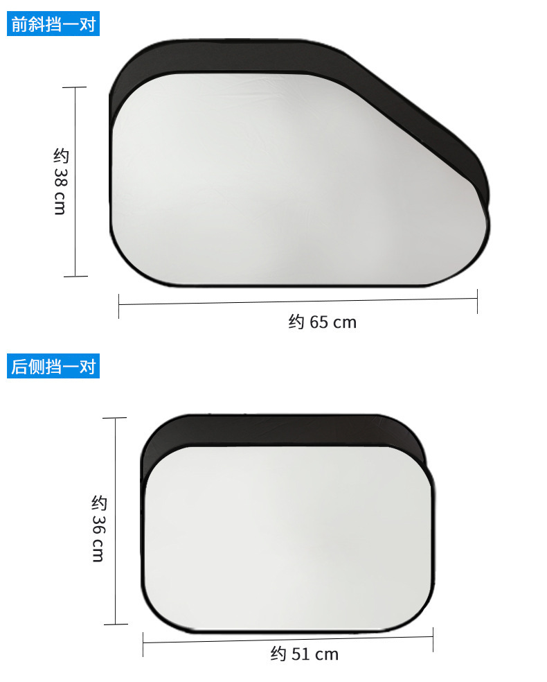 本产品材质为涂银布,能有效的反射太阳光线,更有效的对车内进行隔热。