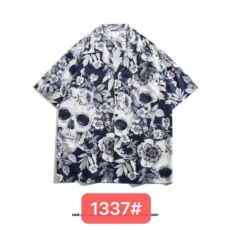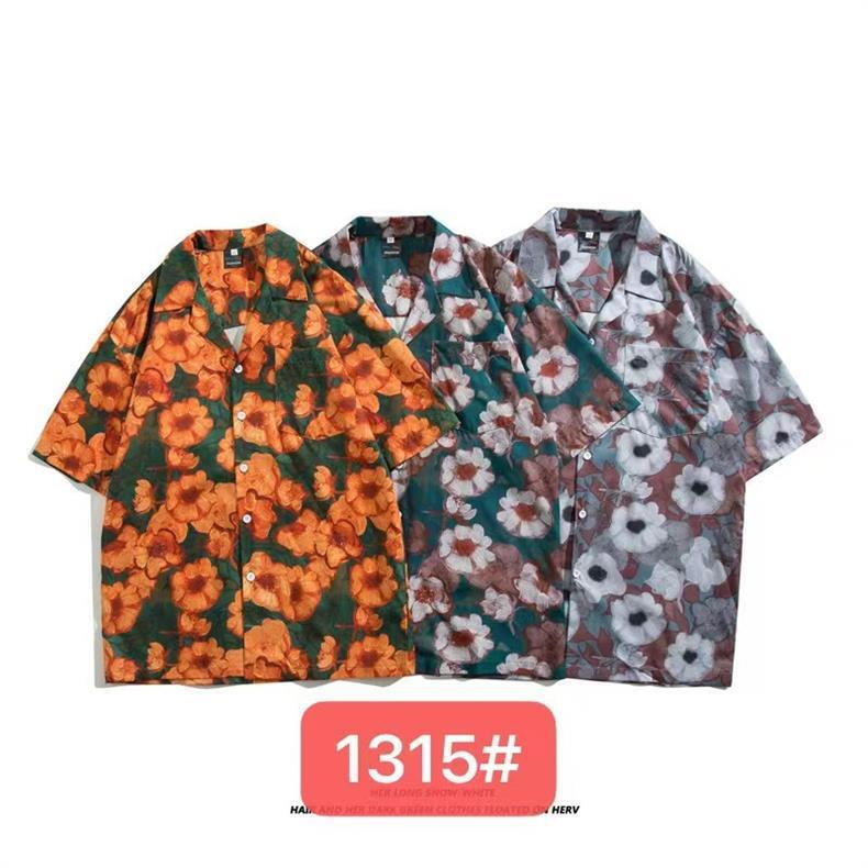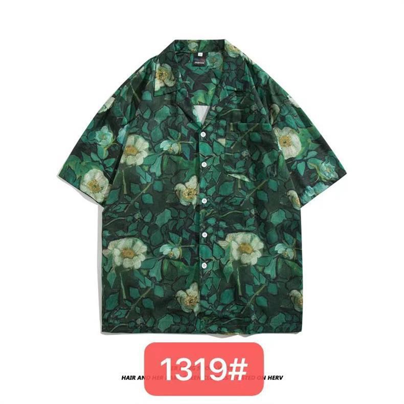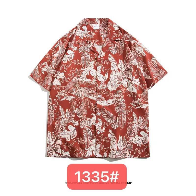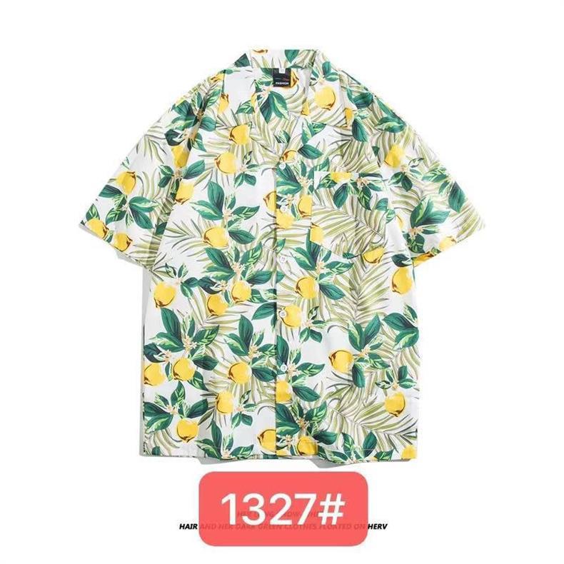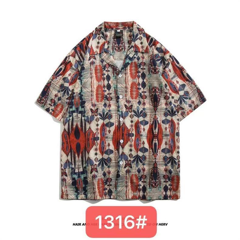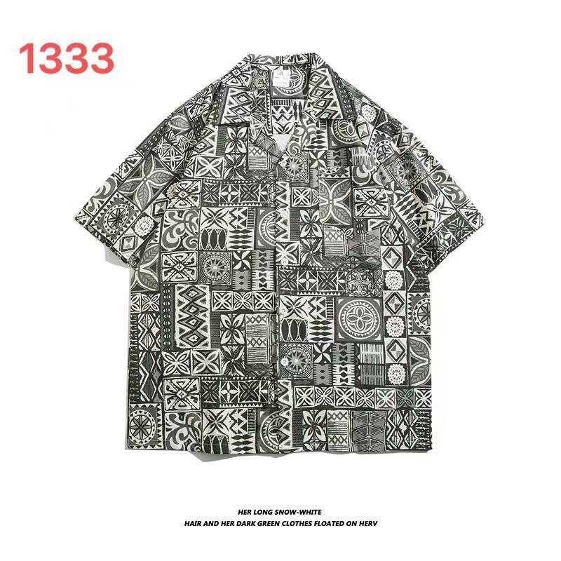 미국 서부 해안! 패션 브랜드 복고풍 셔츠 남성과 여성 커플 여름 쿠바 칼라 짧은 소매 토템 셔츠 패션 인쇄스토어 가기